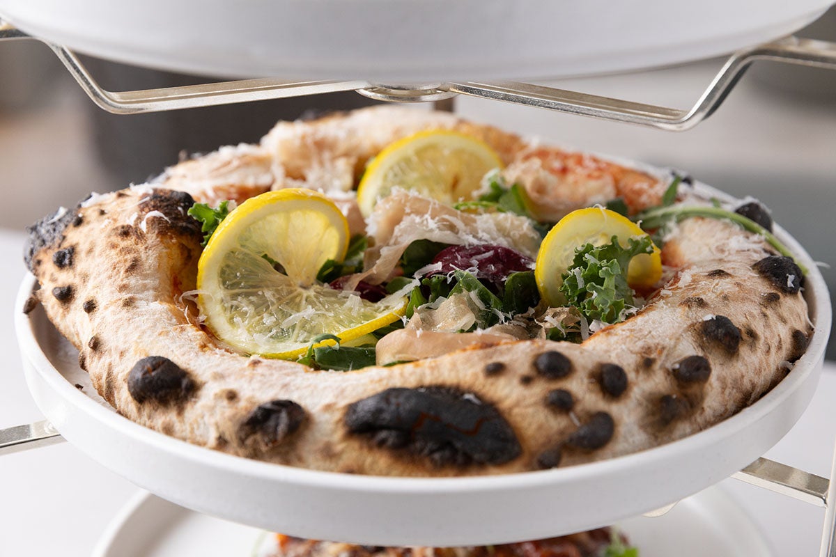 同レストランは店内の二面がガラス張りのつくりになっており、神戸の象徴ともいえる神戸ポートタワーやオーシャンビューを望む眺望が自慢。店内席の他に、海風を感じるテラス席もご用意しています。本プランでは、シャンパーニュやスパークリングワインのフリーフローと、同店が誇るピッツァやフィンガーフードを3段のティースタンドに並べてご提供いたします。