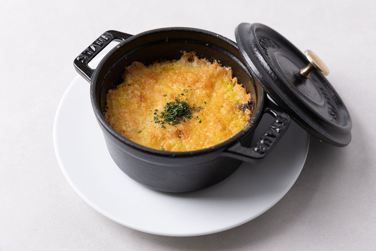 〇黒毛和牛の赤ワイン煮込み、マロングラッセ、ジャガイモのグラタン”アッシェパルマンティエ”