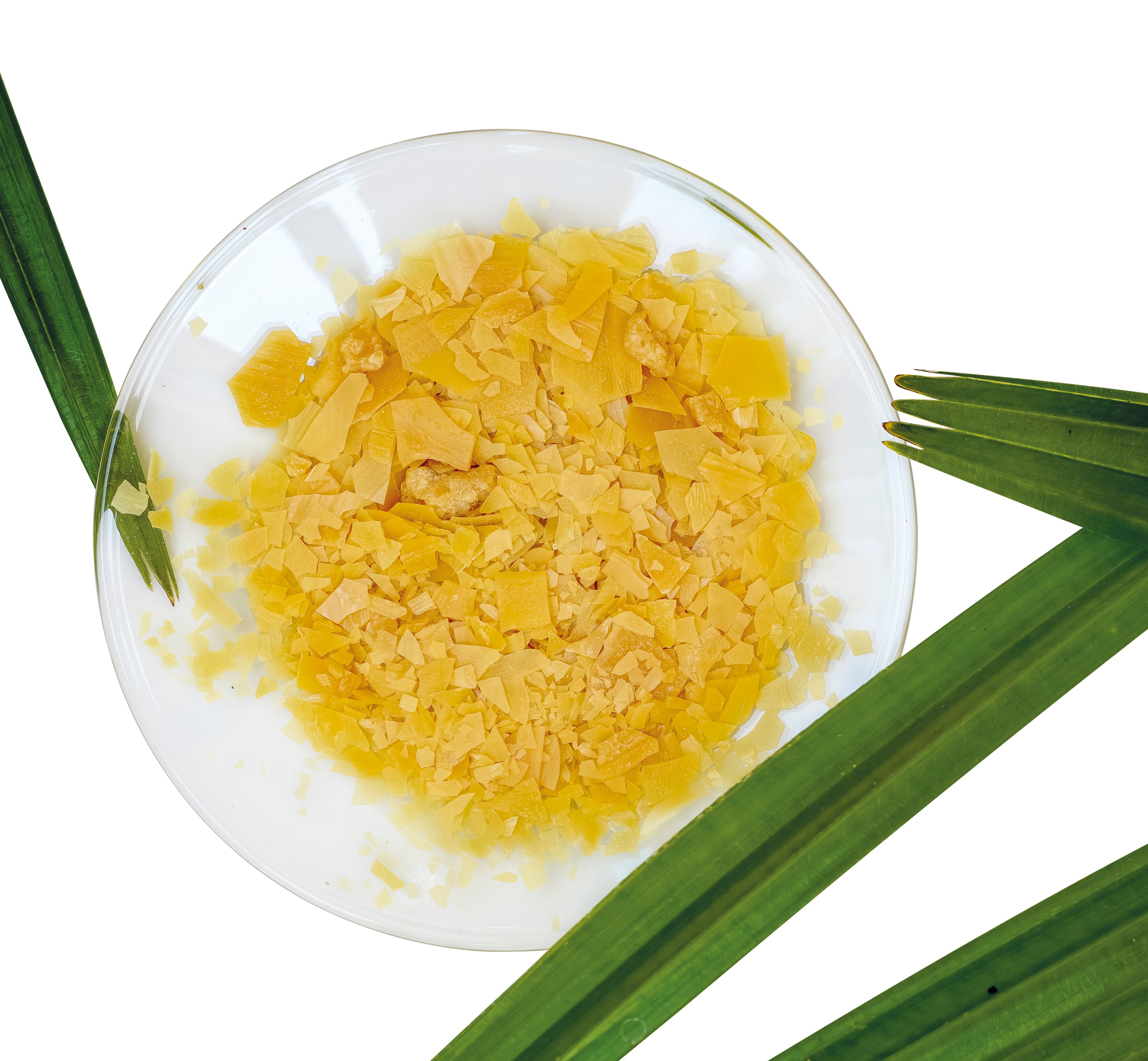 「カルナウバワックス」は、200年以上の歴史があり、化粧品や医薬品など様々な分野で幅広く使用されています。ワックスの採取方法は、ヤシの葉を切り取って天日干しにし、葉の表面からフレーク の形で集められるため、ヤシの木を伐採することなくサステナブルな生産が可能です。