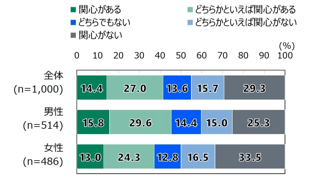今年1月にスタートした新NISA制度(少額投資非課税制度)については4割以上が「知っていた」と回答、投資による資産形成についても4割以上が「関心がある」と答え、魅力ある投資先として男性は先進国の外国株式、女性は国内株式を高く評価する傾向が出ています。