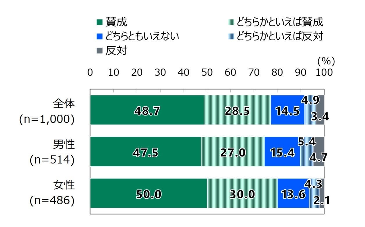 ※賛成は「賛成」「どちらかといえば賛成」の合計、反対は「反対」「どちらかといえば反対」の合計。