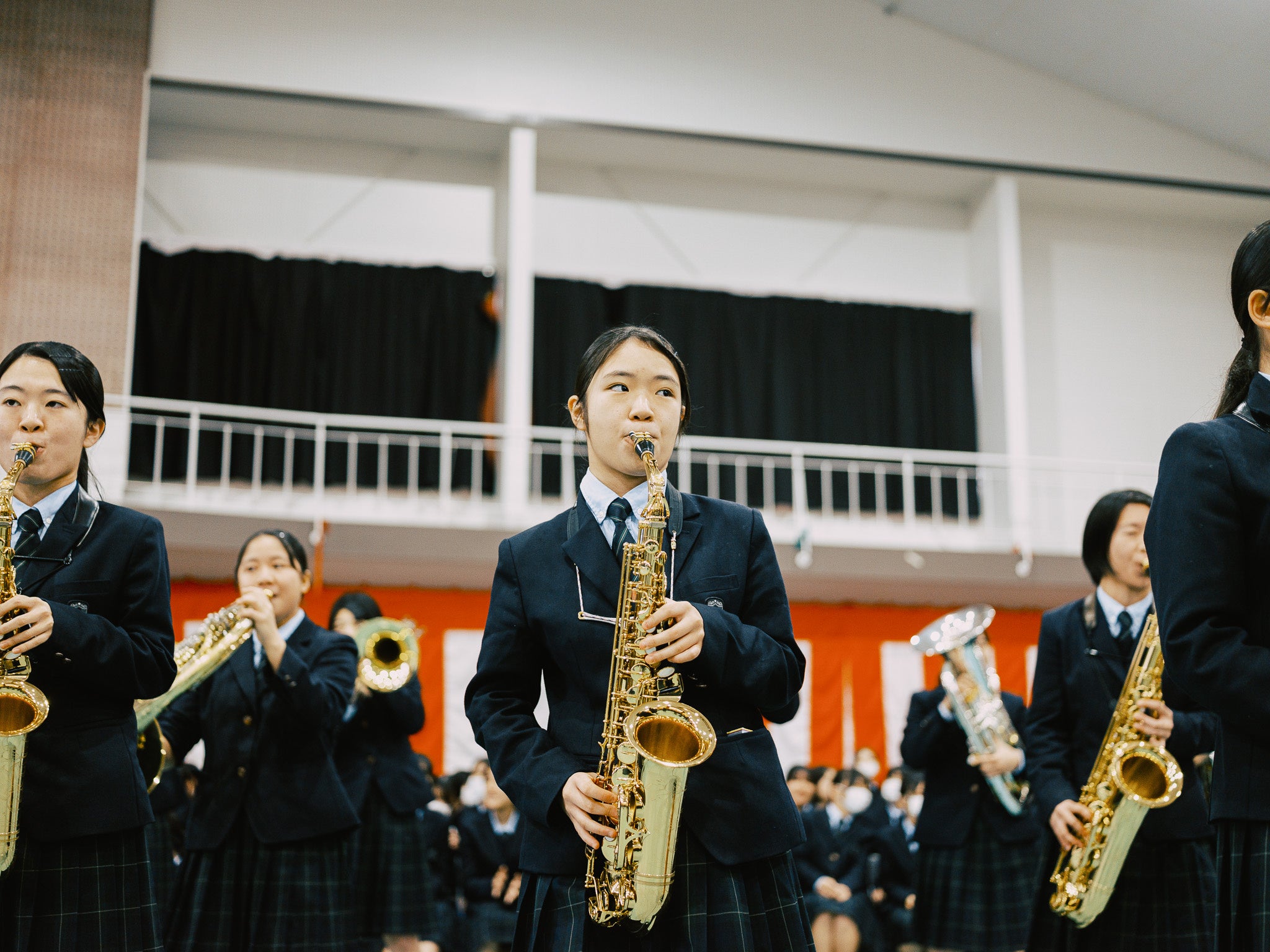 演奏が始まると、後輩たちによる、まっすぐで力強い音色に、卒業生たちは胸いっぱいの表情を浮かべていました。先生も生徒たちも一緒に踊ったり盛り上がったりと、会場全体に一体感が生まれましたひと時となりました。