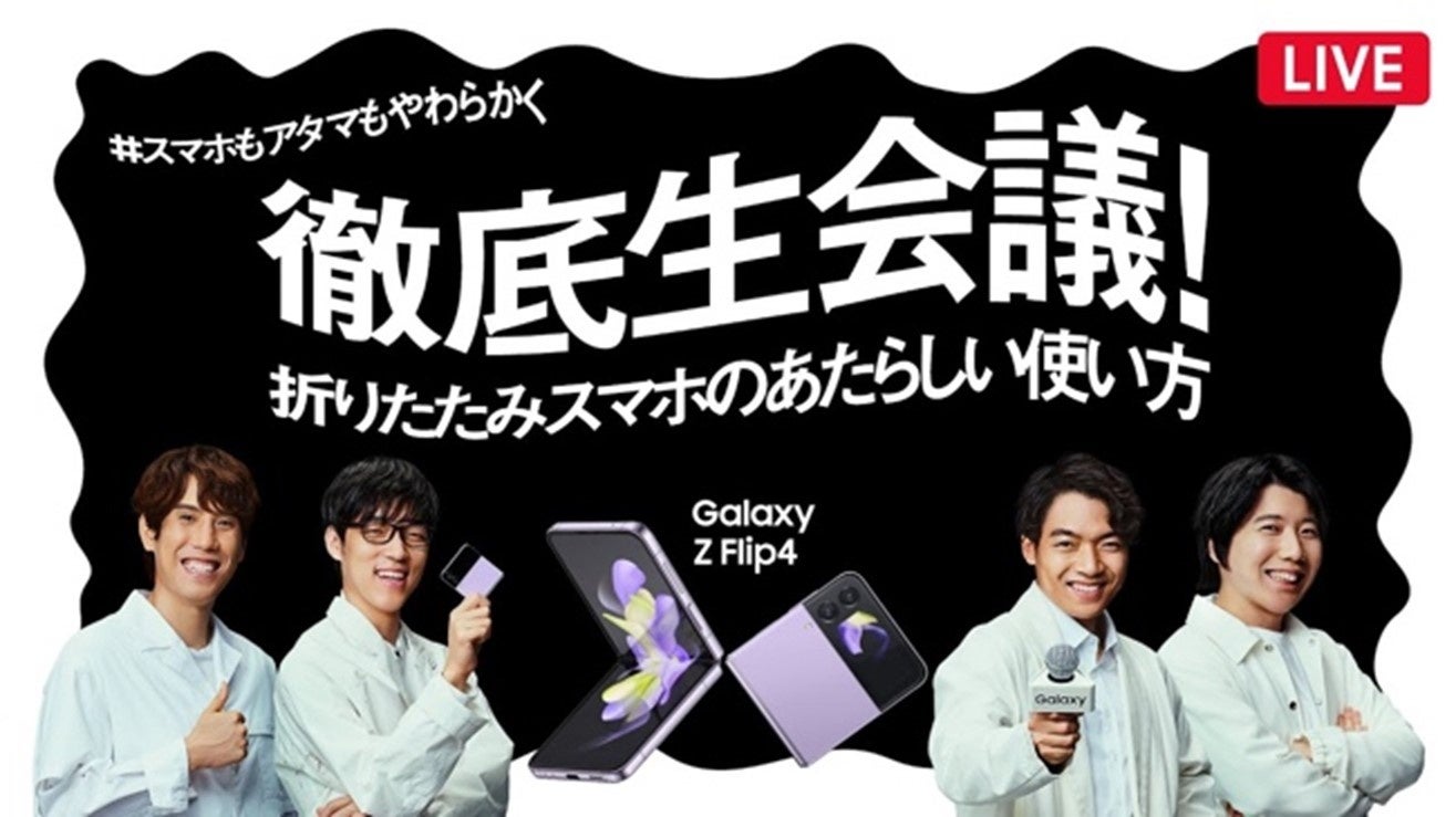 Galaxy公式YouTubeチャンネルでは、11月4日に「QuizKnockがライブ配信!折りたたみスマホの新しい使い方」をライブ配信いたしました。伊沢拓司さん、こうちゃんさん、ふくらPさん、須貝駿貴さんがチームに分かれ「Galaxy ドラフトクイズ」に挑戦。「Galaxy Z Flip4」にちなんだクイズで対戦しながら、各チームが再現するアイデアを、ドラフト形式で選定いただきました。また、早押しクイズでは、QuizKnockのみなさんの圧倒的な知識やクイズ文の予測能力が披露され、白熱した対決が繰り広げられました。アーカイブは下記URLよりご覧いただけますので、ご投稿いただいたアイデアとクイズ対決をぜひお楽しみください。