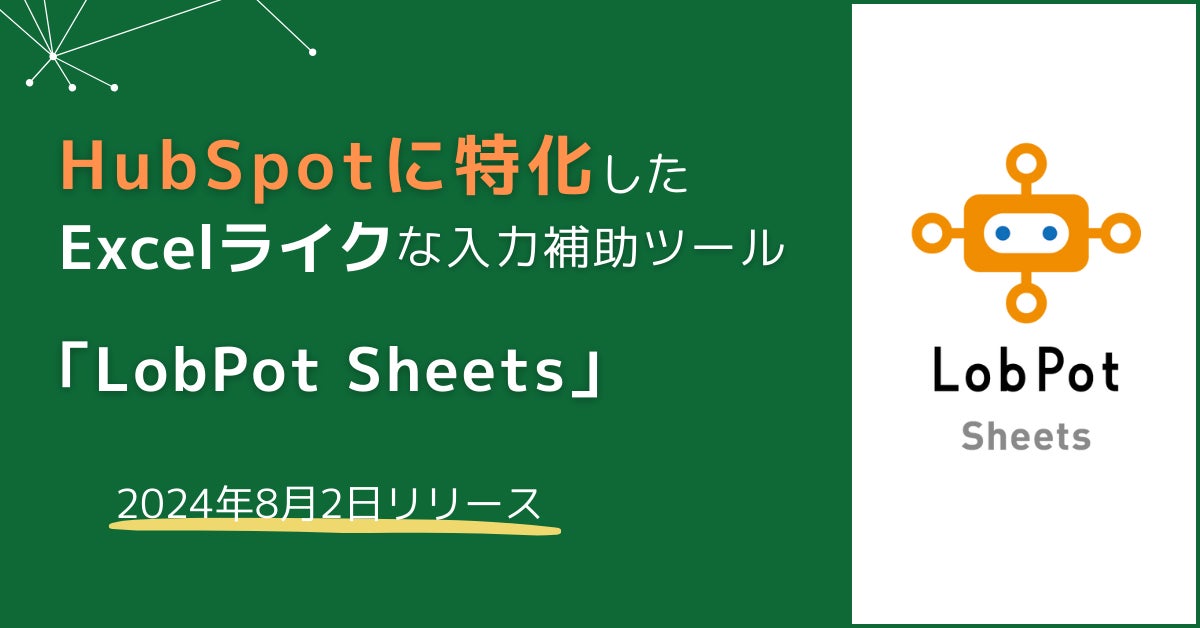 アンドデジタル、CRM搭載のカスタマープラットフォームHubSpotに特化した入力補助ツール「LobPot Sheets」をローンチ