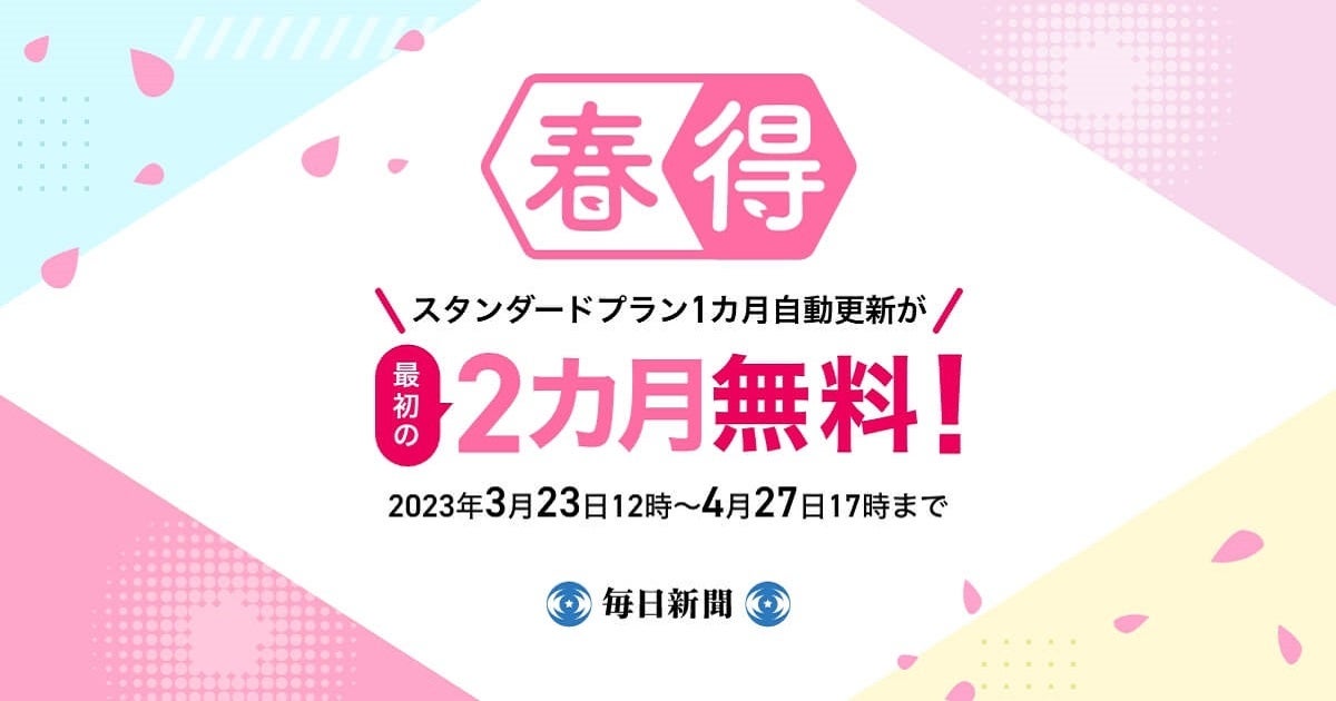 人気のプランが2カ月間無料になる 毎日新聞デジタル「春得キャンペーン」開始