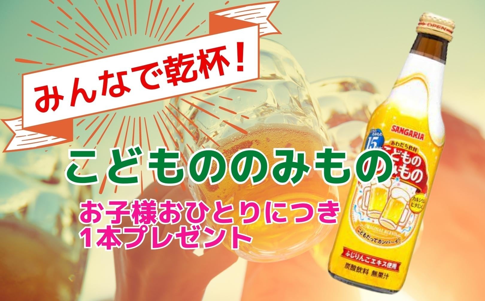 そして、ご家族でもお楽しみいただけるよう、お子様には乾杯用として、あわだち飲料「こどもののみもの」をおひとりにつき1本プレゼント!(小学生以下のお子様限定)