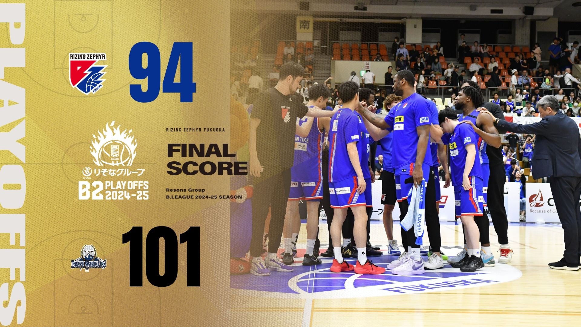 2025年5月19日(月)に開催した、りそなグループB2 PLAYOFFS 3位決定戦【ライジングゼファーフクオカ vs.信州ブレイブウォリアーズ】GAME3は、“福岡 94-101 信州”で敗戦となりました。