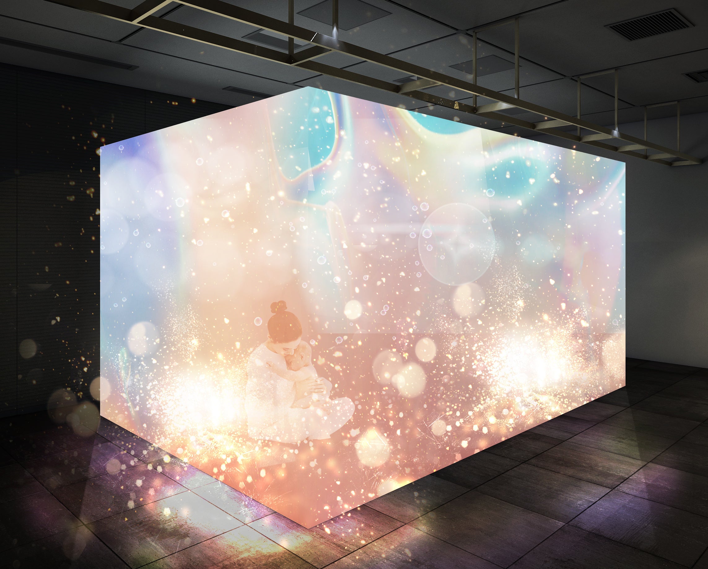 “抱っこ”は、赤ちゃんと初めましての瞬間から始まる、一番最初のコミュニケーションであり、育児のフェーズが変わっても長く続いていくもの。本イベントでは、赤ちゃんとの日常である抱っこによって生み出される神秘的な変化を、デジタルアートで体感いただけます。直接コミュニケーションをとるのが難しい赤ちゃんが低月齢の時でも、非日常な空間で赤ちゃんと一緒にリフレッシュすることで、ママと赤ちゃんが同じ目線で楽しめるような、わくわくと驚きに満ちた空間です。ポーラのスキンケアブランド「Red B.A」のフレッシュフローラルの香りに 包まれ、リラックスしていただけます。