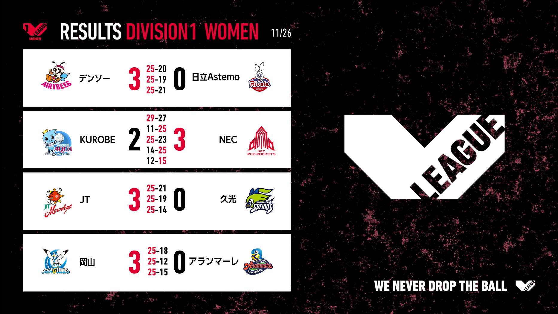 2位の久光に大きく差を付け勝利した首位JT 写真は11月11日 対KUROBE戦