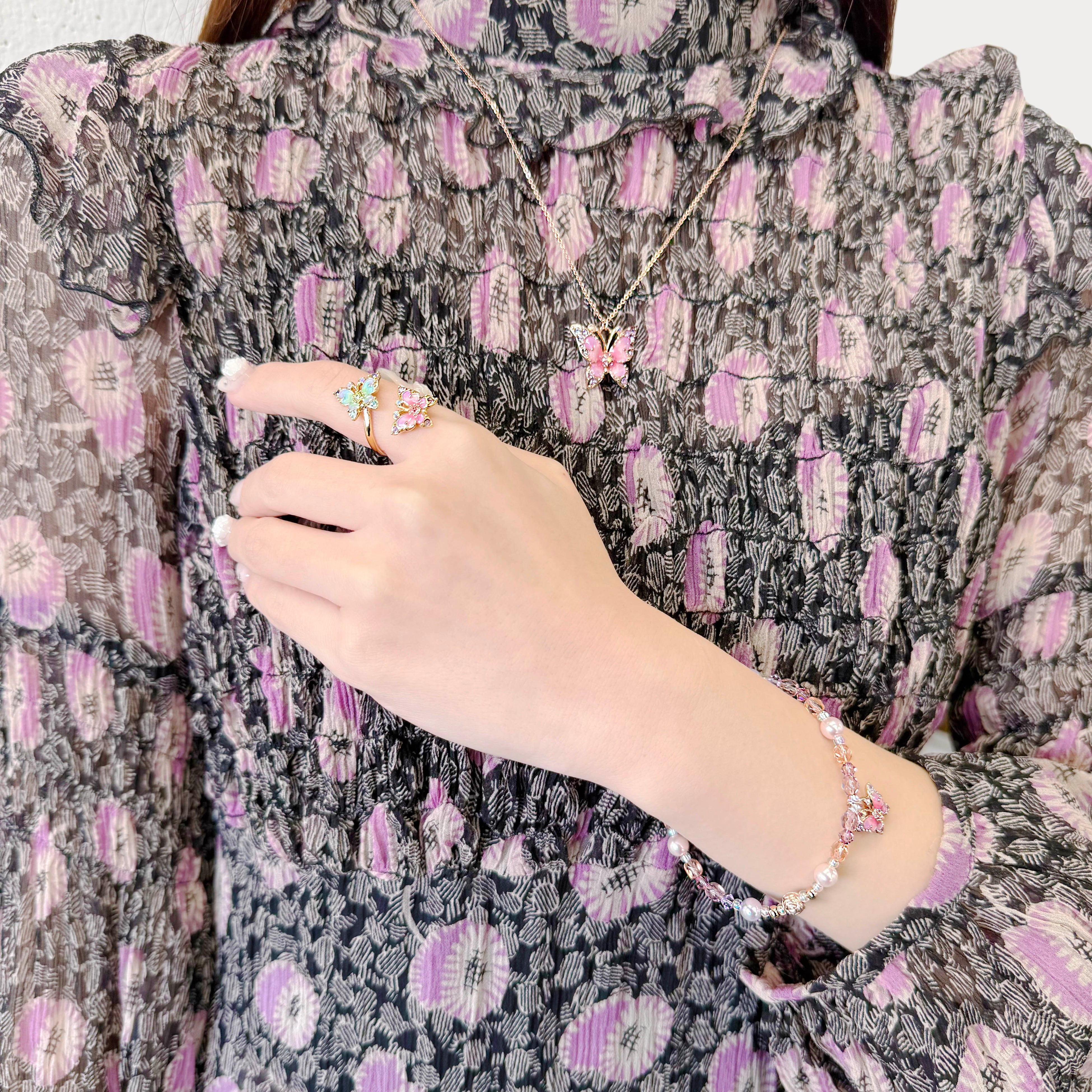 相反するテイストのミックスが魅力なANNA SUIのアクセサリーから、春カラーの蝶モチーフが登場。