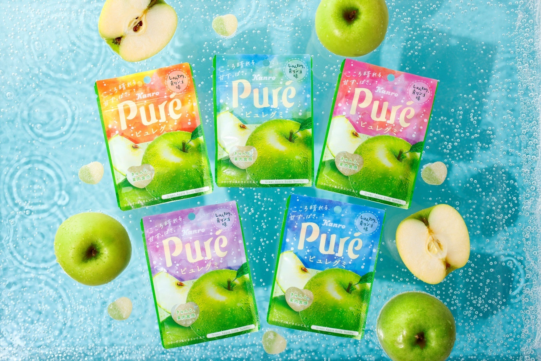 今回発売する「ピュレグミ しゅんわり、青りんご」は、青りんごとソーダフレーバーを組み合わせた、甘ずっぱくて爽やかなフレーバーのグミです。これまで春夏に発売した「ピュレグミ」のソーダフレーバーは、昨年4月に春限定で発売した「ピュレグミ ピングレスパークリング」味をはじめ、爽やかなソーダとフルーツの組み合わせが支持されています。