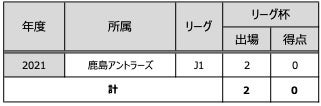 リーグ杯 2試合(0得点)