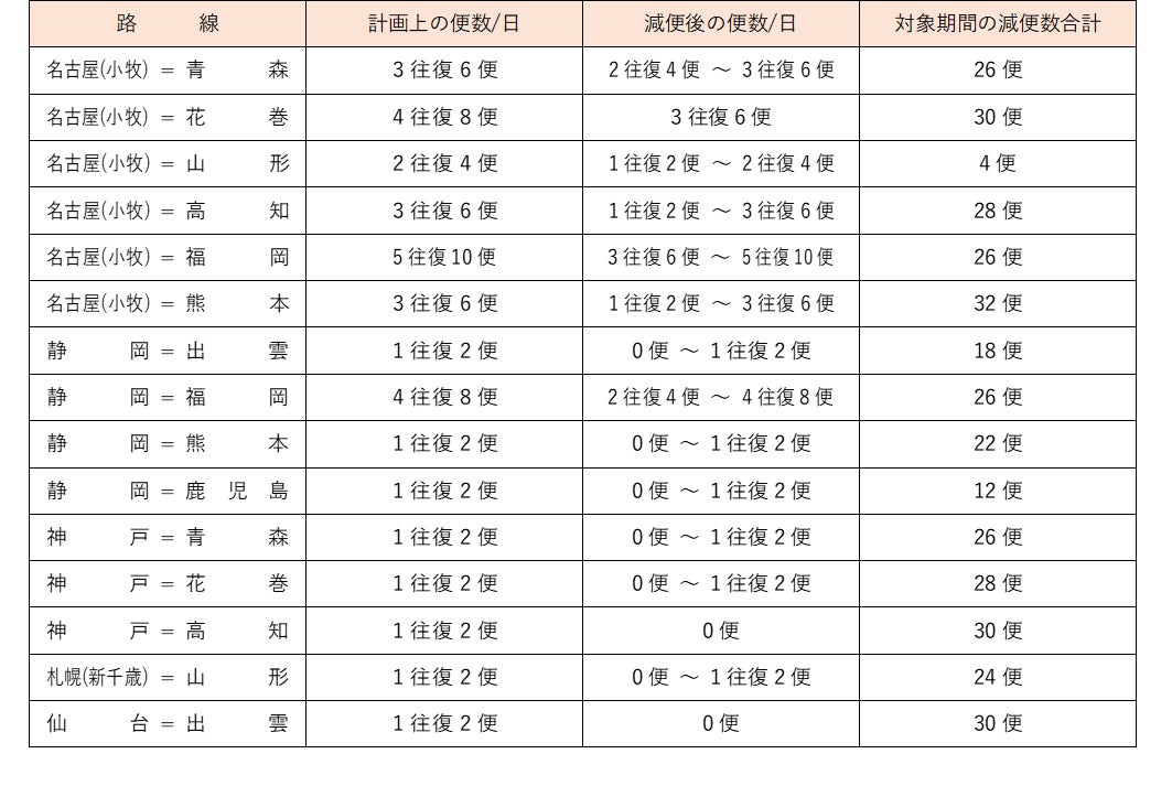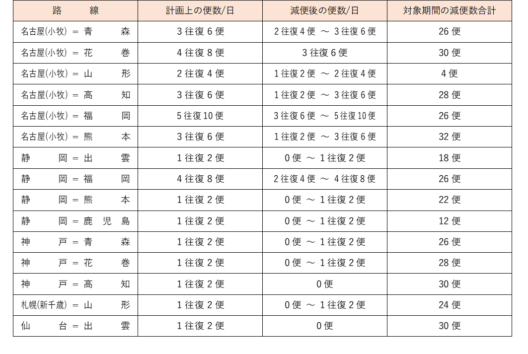 【運休・減便を決定した路線・便について】※ 同期間中の運航便の詳細は、別添資料をご参照ください。