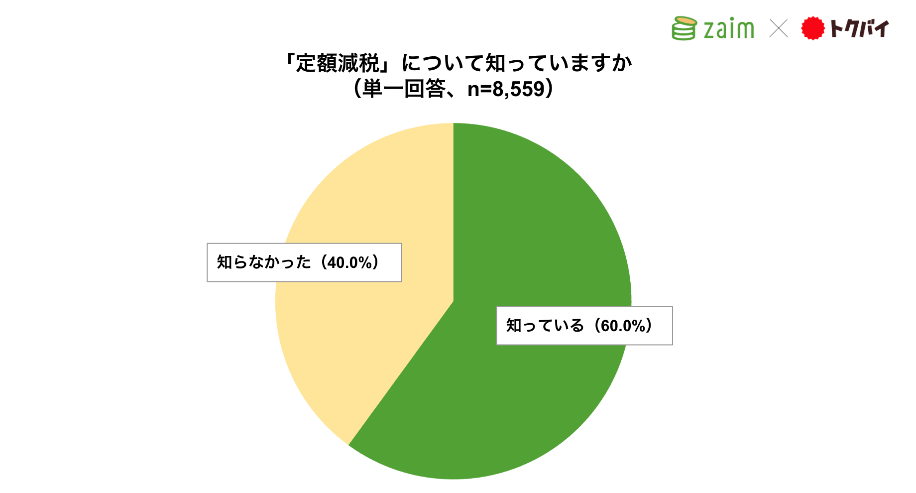 【Zaim × トクバイ調査】「定額減税」の認知度は6割、そのうち正確に減税額を把握している人は約2割!