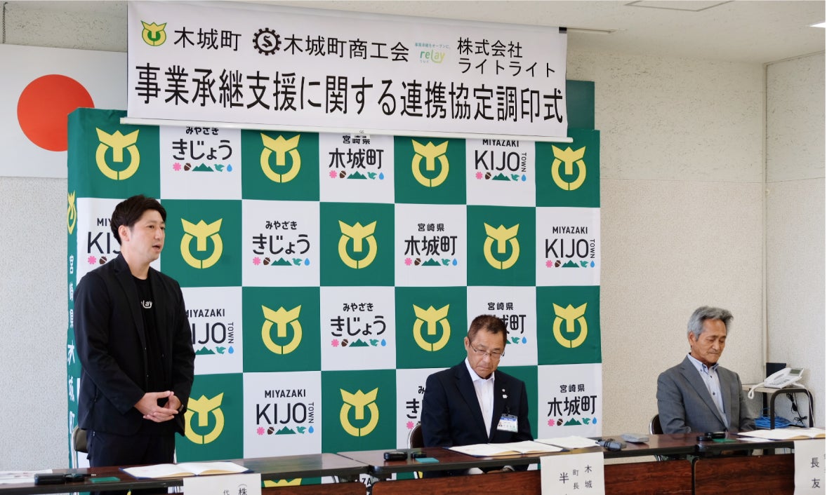 【自治体向け事業承継支援サービス】事業承継マッチングプラットフォーム「relay(リレイ)」と宮崎県木城町、木城町商工会と事業承継推進のため連携協定を締結