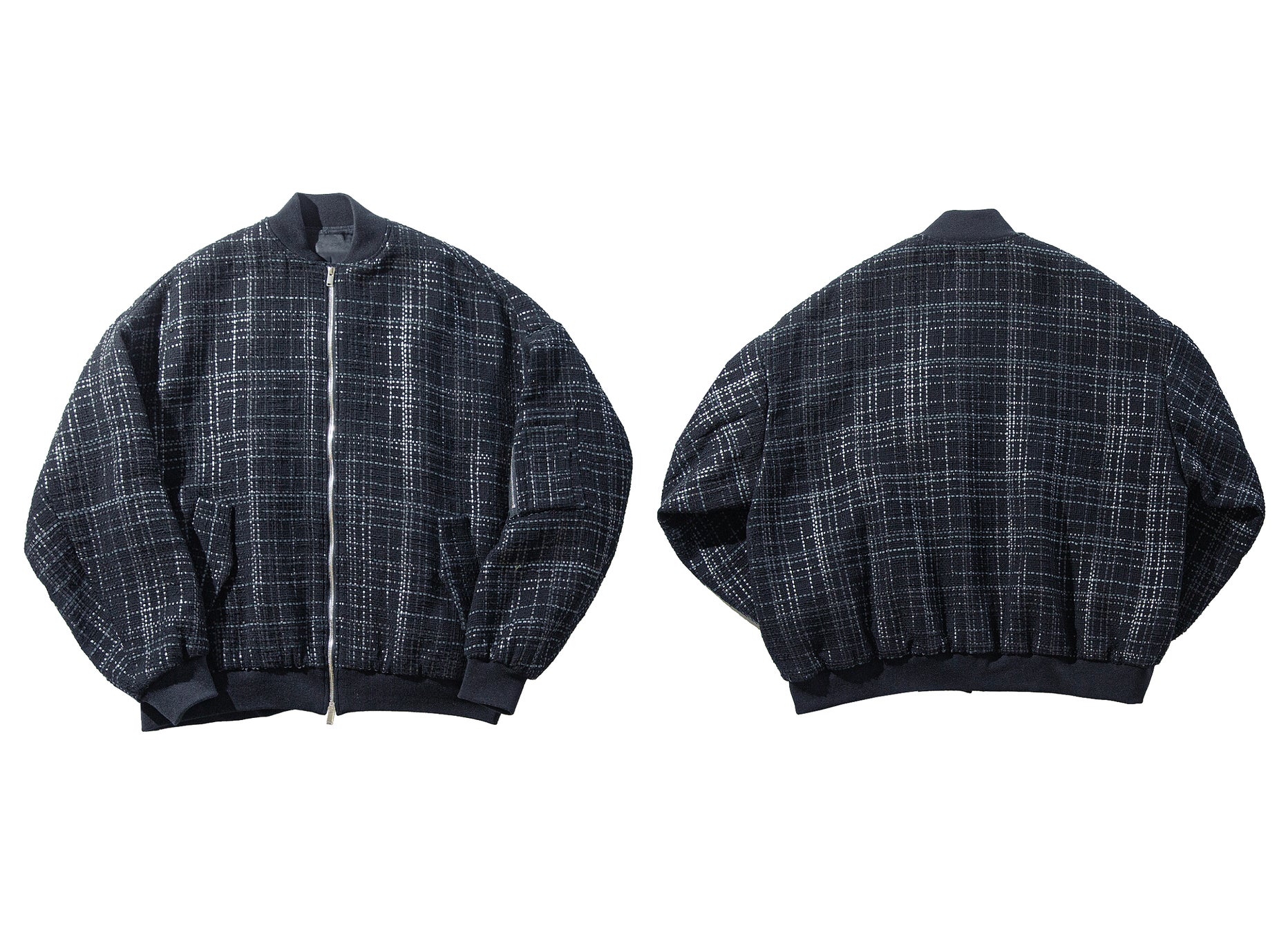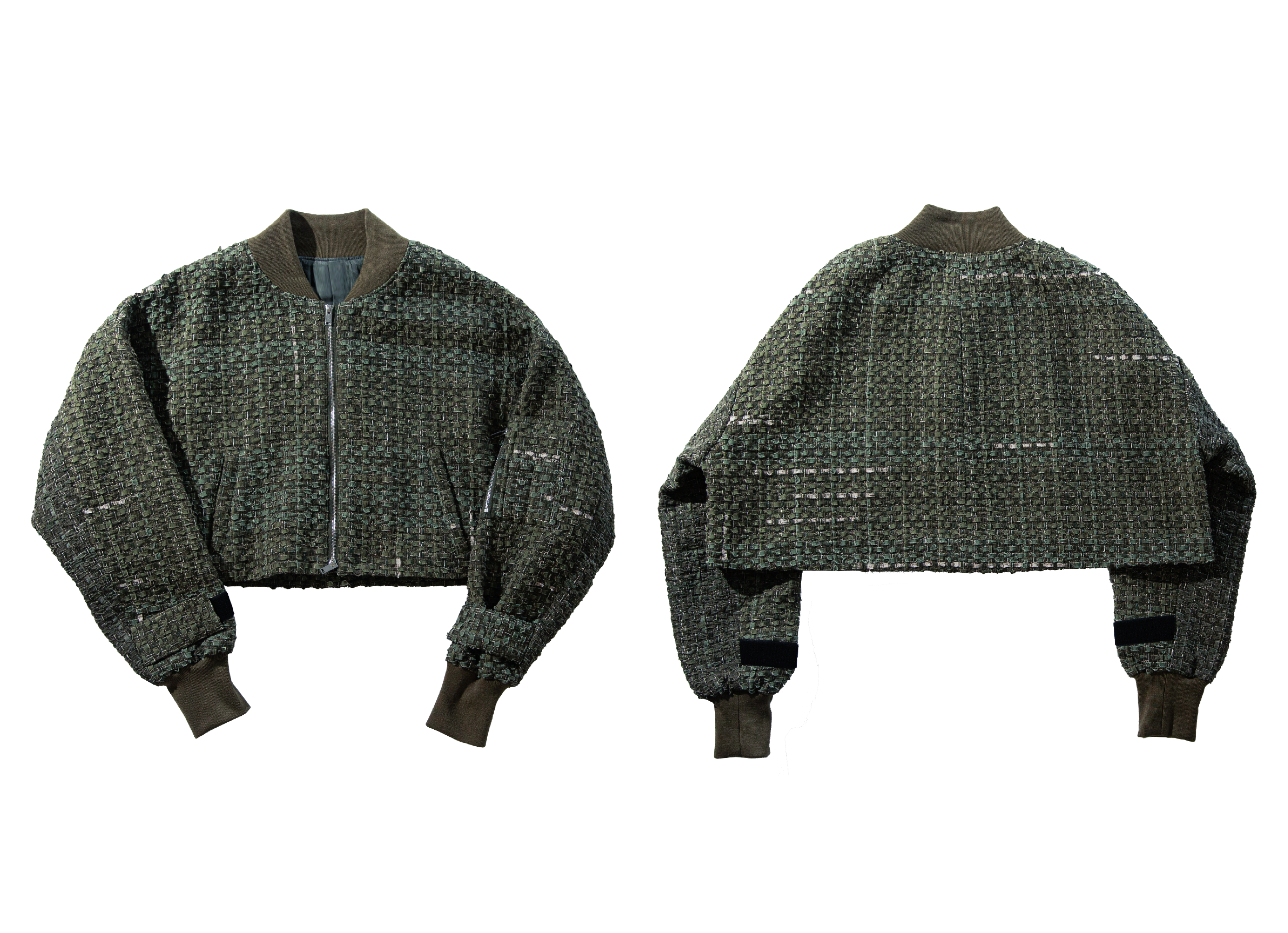 - ITEM:Cropped Bomber Jacket Military Mixed Tweed