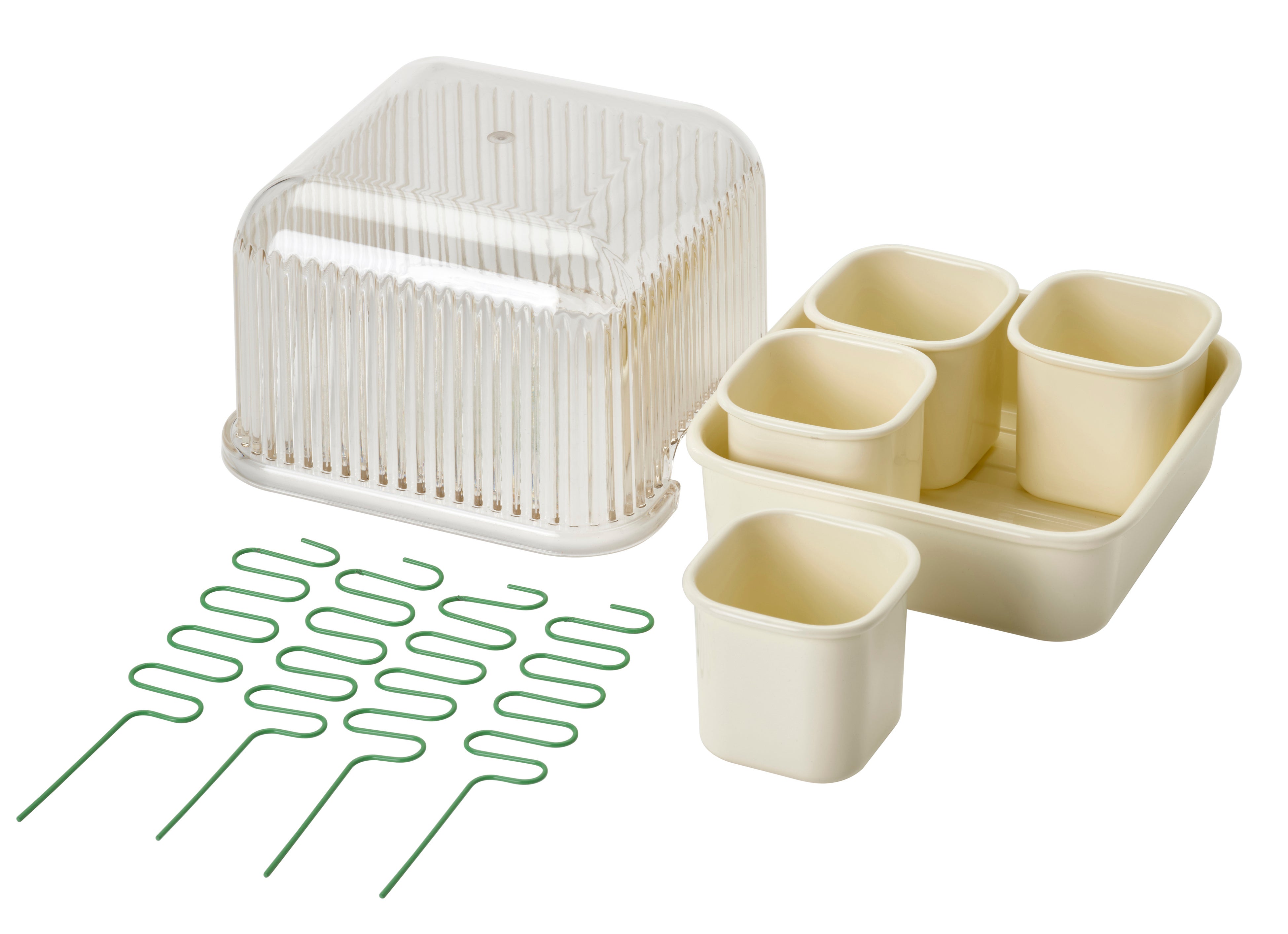 植物を育ててみたいなら、このかわいい栽培セットはミニ温室にうってつけです。 ふたを閉めた暖かい環境で、種は短時間で発芽し成長します。ふたに開口部が付いているので、空気が効率的に循環します。植物が少し大きくなったら、付属のプラントサポートで支えましょう。ふたが必要なくなったら、ひっくり返して上にトレイをのせられます。