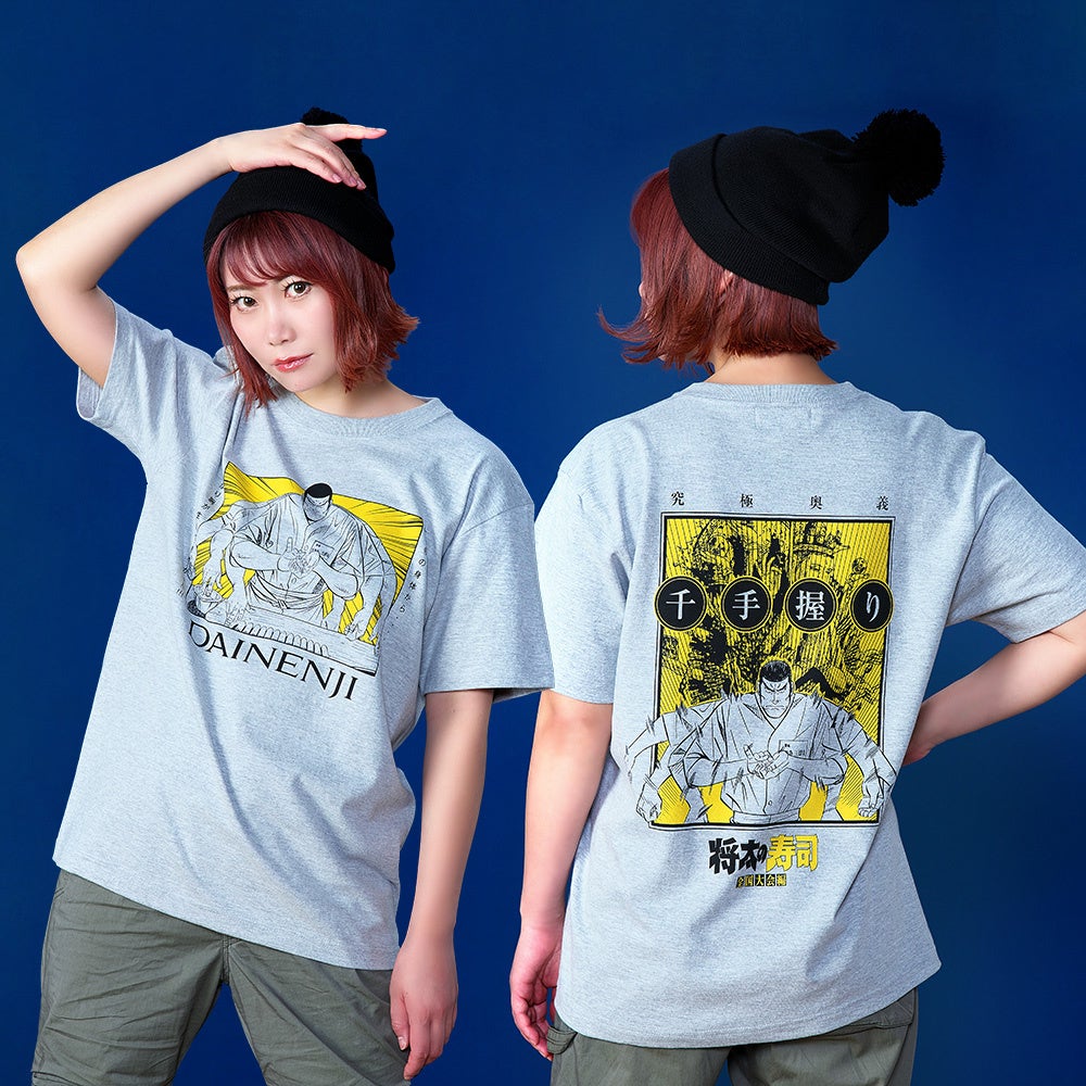 『将太の寿司』に登場する超人的寿司職人、宮城県代表「大年寺三郎太」。その高速かつ正確無比な握りは10分間で312個を握り、あまりのスピードに腕が複数に見える姿は「千手握り」と呼ばれる!そんな大年寺の姿をTシャツとして完全デザイン!