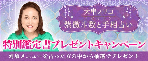 ※『大串ノリコ紫微斗数と手相占い 特別鑑定書プレゼントキャンペーン』は、サイト内でのみ公開中となっております。