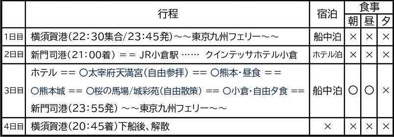 ※添乗員/現地のみ同行(2日目新門司港下船時~3日目小倉駅送迎バス乗車時)