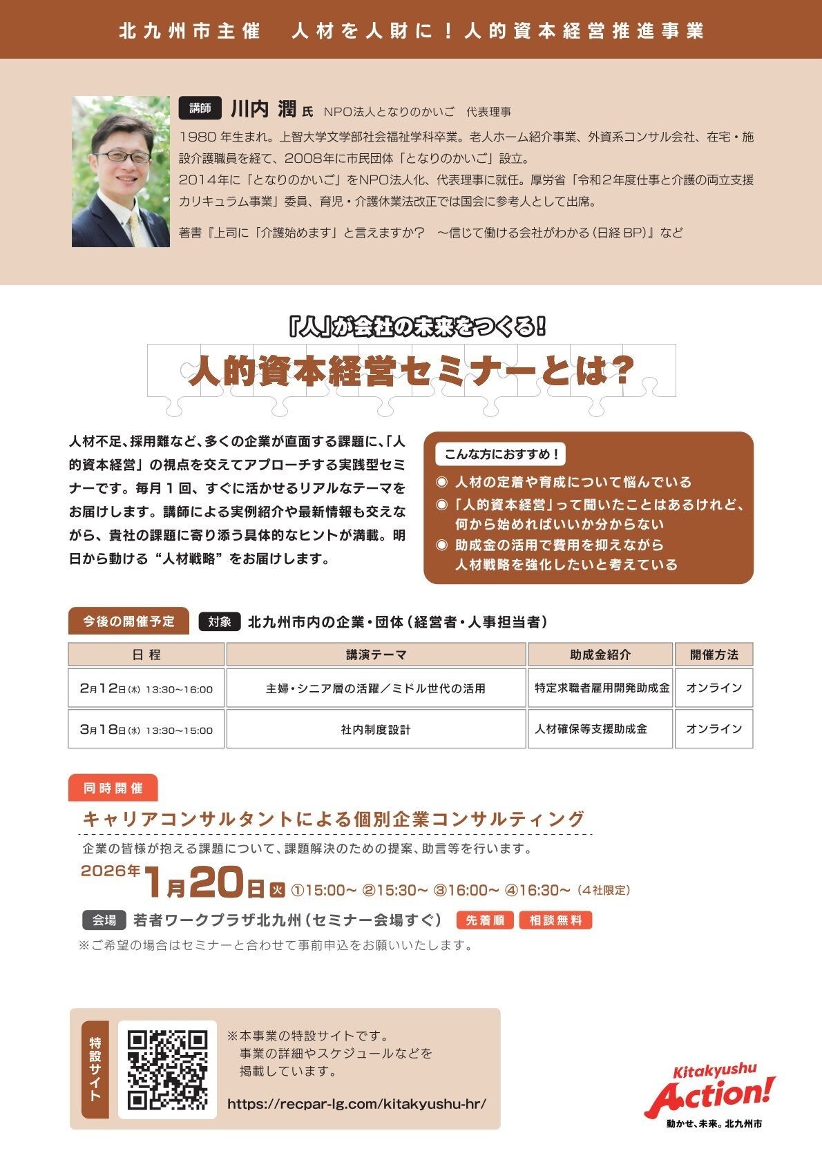 採用難・人材不足時代を乗り越えるための企業向けセミナーを北九州市で開催します。
