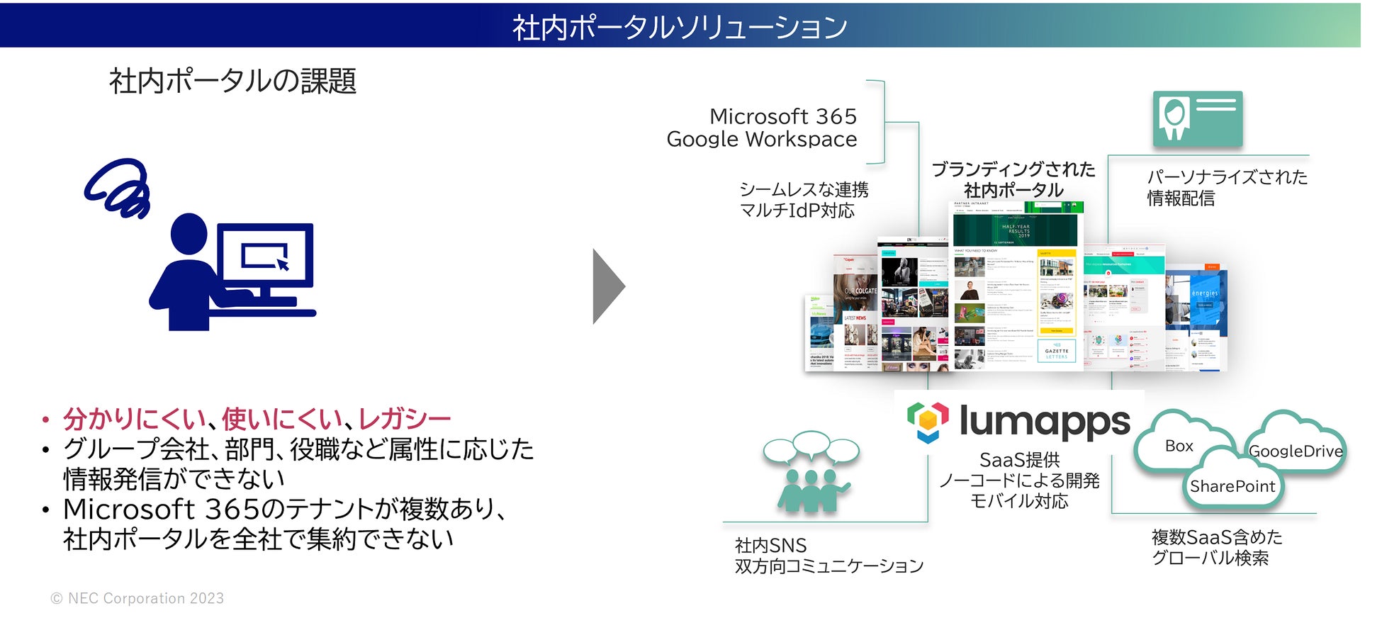 NEC、組織の生産性を高め、従業員エンゲージメントの向上に貢献するクラウド型社内ポータルソリューション「LumApps」の販売を開始