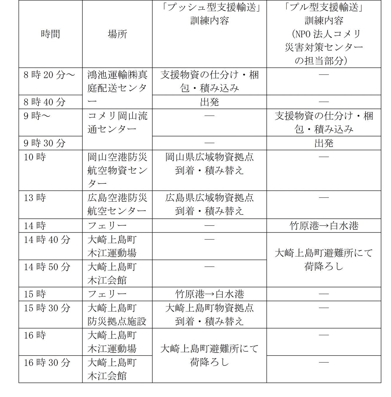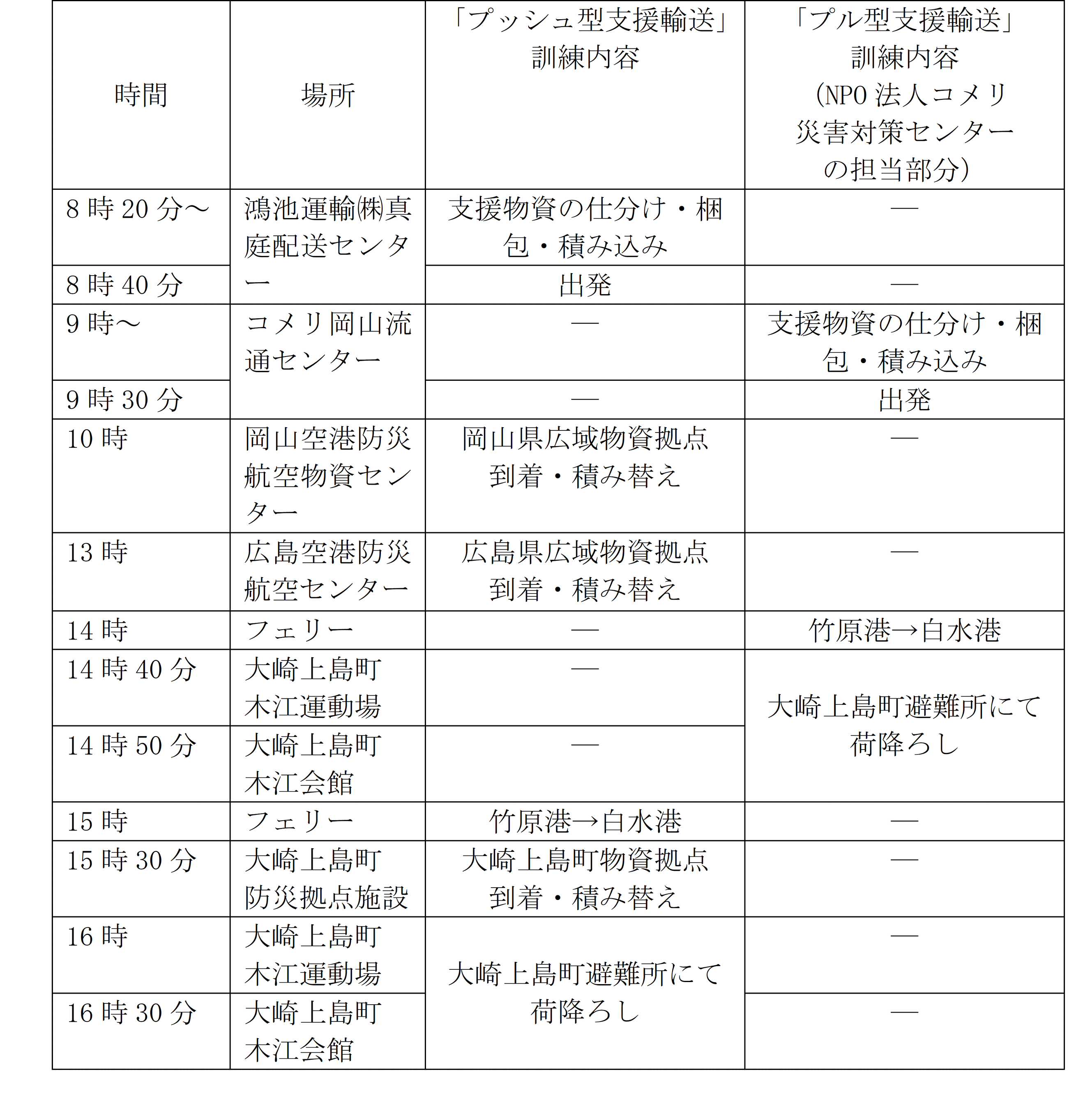 ※コメリ岡山流通センターでの演習は9時~9時30分