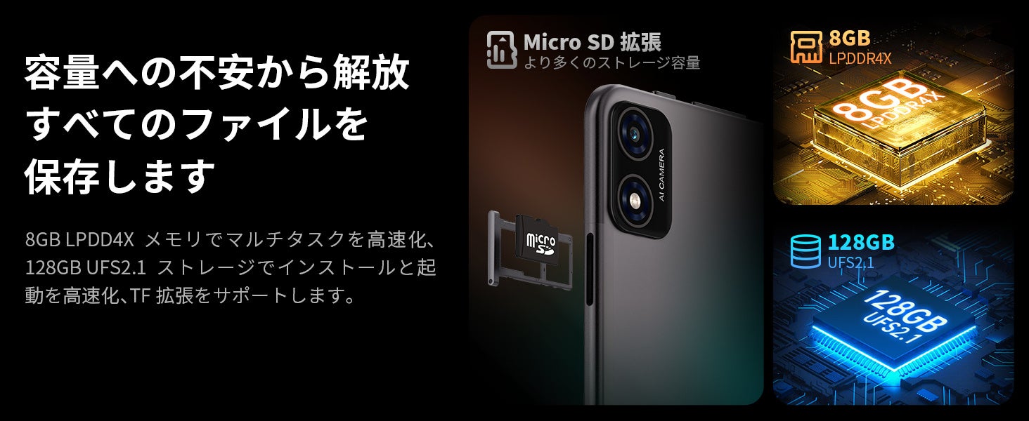 8GB LPDD4Xメモリと128GB UFS2.1ストレージでマルチタスク処理、インストールと起動をより高速化になります。また、TF拡張もサポートしているため、容量の不足を心配する必要がありません。OfficeやZoomなどのアプリケーションで生産性を高め、Bluetoothキーボードやマウスなどさまざまな周辺機器と接続することで、PCのような使い勝手を体感できます。
