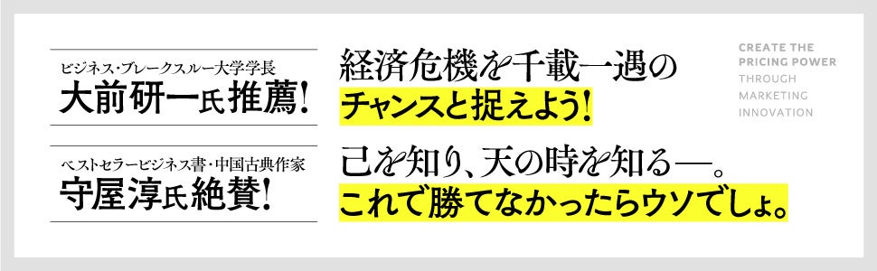 テーマは多岐にわたり、マーケティングや価格決定の戦略論の枠を超えた内容です。「マーケティング」「ブランディング」「企業文化」を体系的に網羅しています。また、優れたマーケティング施策の実施によって価格支配力を有している62社の企業事例をご紹介しながら、マーケティング・イノベーションを起こす方法を紐解きます。