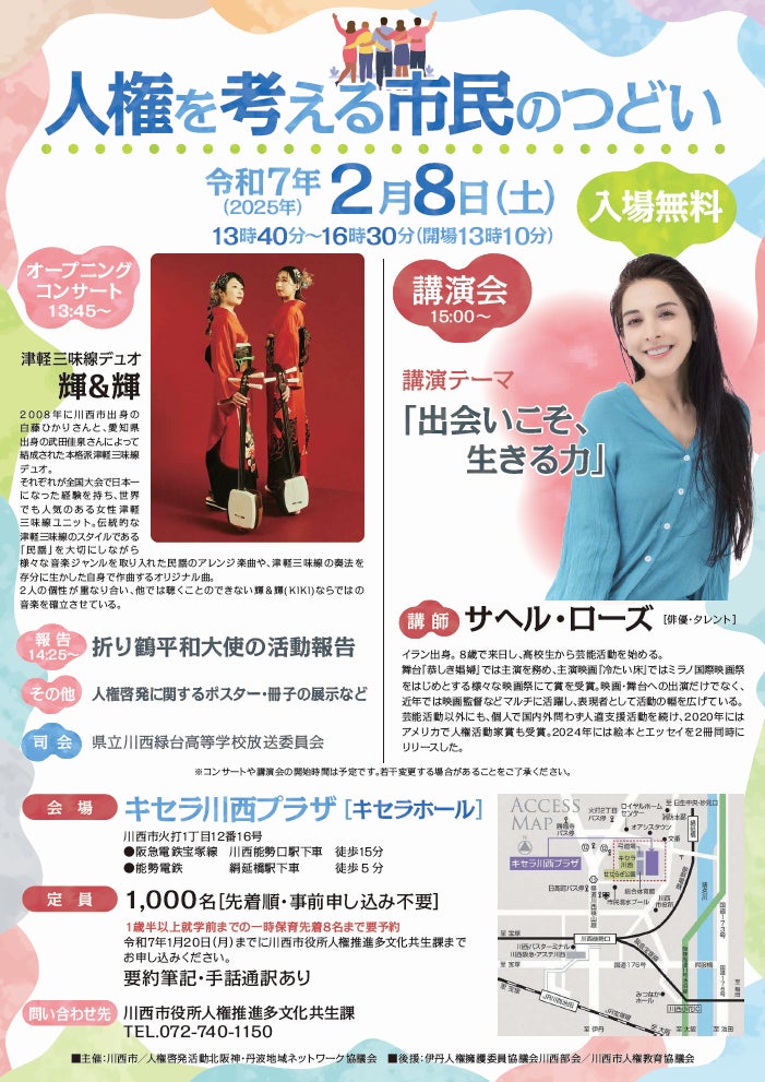 兵庫県川西市では、人権の尊重について学ぶとともに、平和の大切さについて考えることをテーマに、5年に一度の「人権を考える市民のつどい」をキセラ川西プラザ(川西市火打1丁目)で開催します。