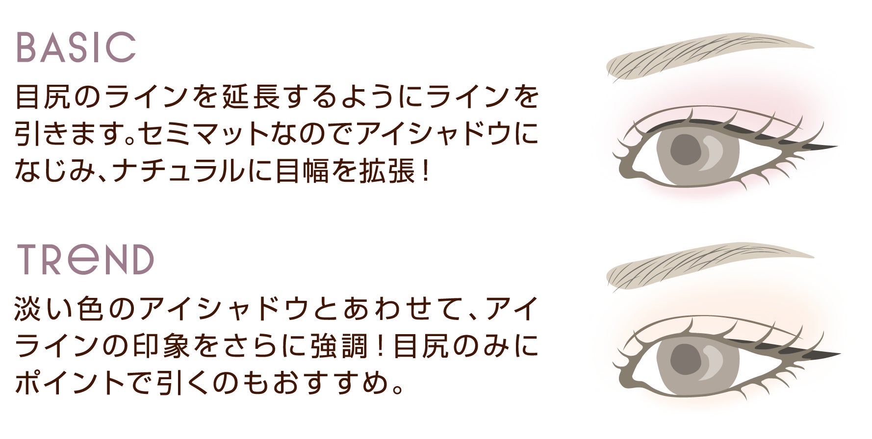 (3) 目元に溶け込むセミマット質感。アイシャドウにも自然になじみ、瞳の印象を際立たせます。