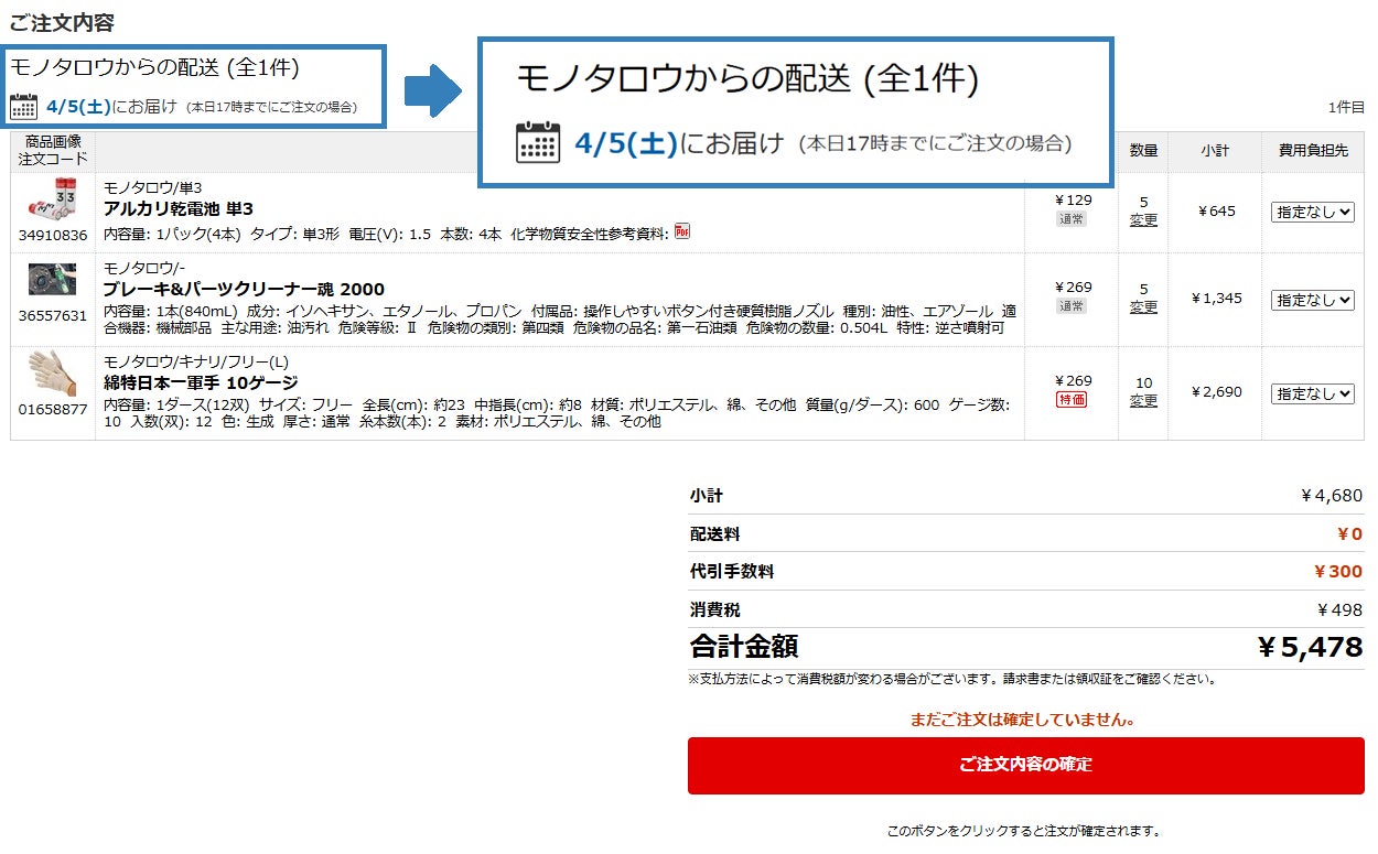 モノタロウ 当日出荷対象商品のお届け日表示を開始