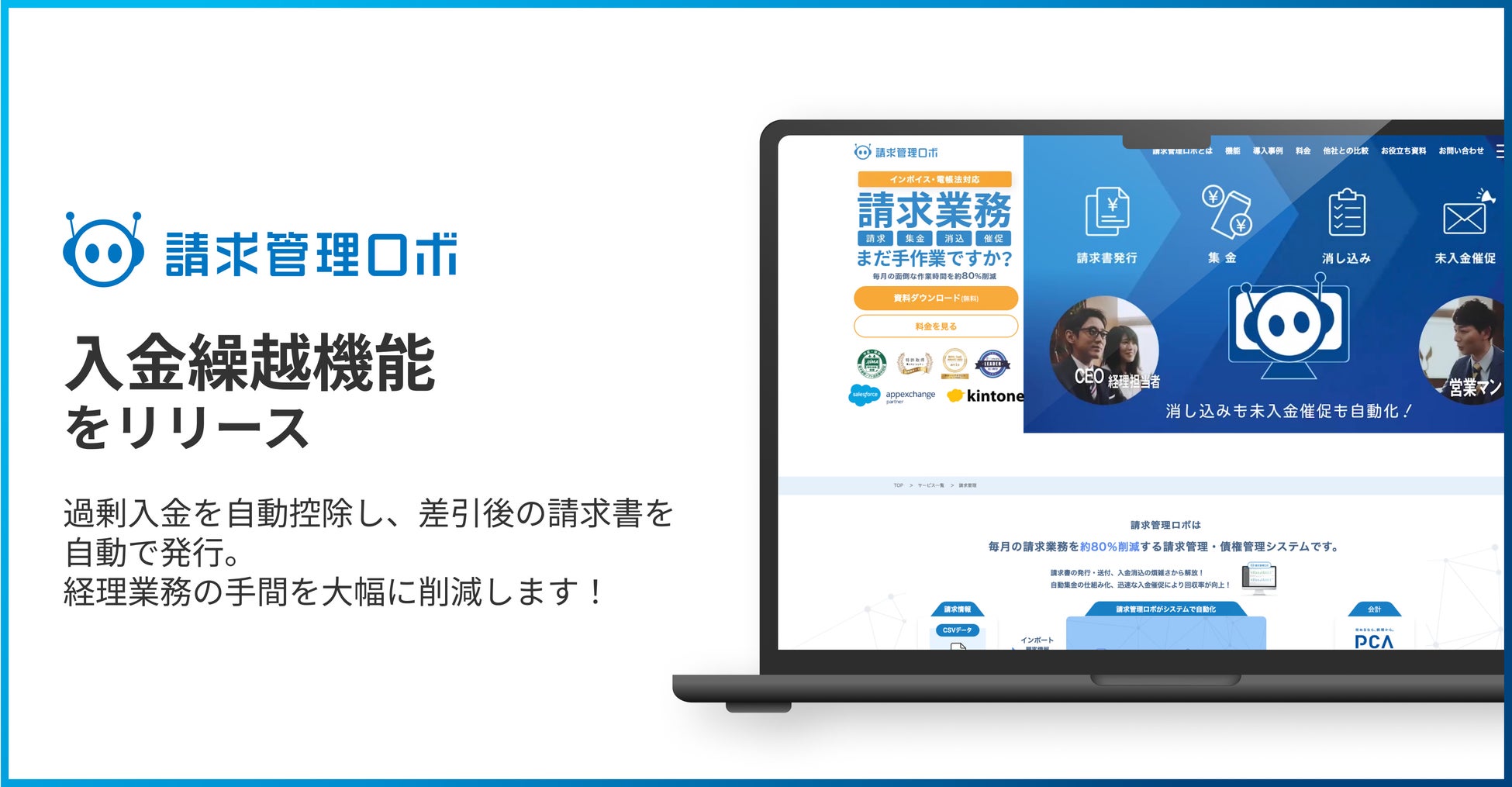 請求管理ロボ、過剰入金を自動で繰越処理する「入金繰越機能」をリリース