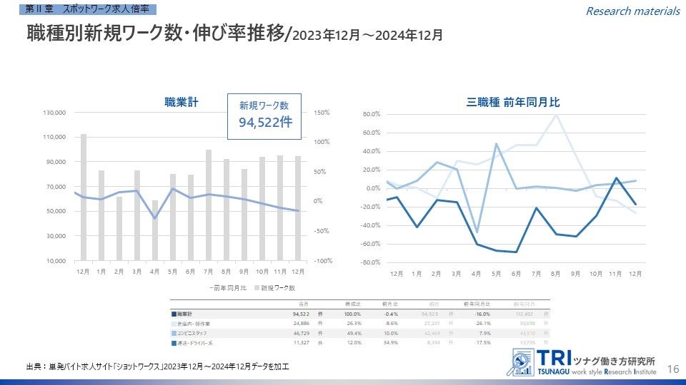 2. 新規ワーク数は前年比-16.0%。主要職種ではコンビニスタッフが前年比+7.9%と唯一上昇。