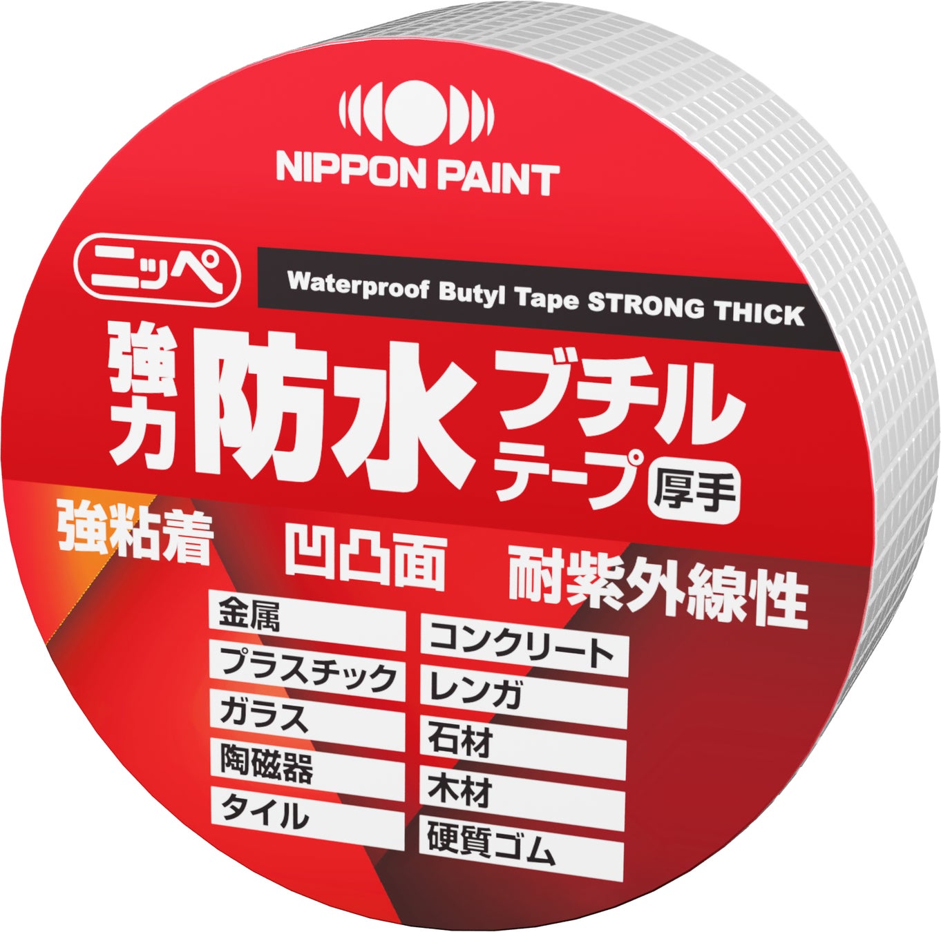 強力な粘着力で、屋内外のさまざまな場所で使用可能な防水ブチル補修テープ