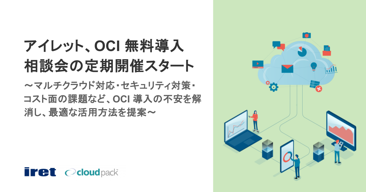 システム・アプリケーションの開発、グラフィック・UI/UX デザイン制作からインフラの構築・運用までをワンストップで提供するアイレット株式会社(本社:東京都港区、代表取締役社長:岩永充正、以下 アイレット)は、Oracle Cloud Infrastructure(OCI)の導入を検討されているお客様を対象に、無料の OCI 導入相談会を2025年4月30日(水)より定期開催することを発表します。OCI 導入に関するお客様の不安や悩みを解消し、漠然としたニーズを具体的な導入計画へと落とし込むことで、安心して OCI をご活用いただけるよう支援いたします。