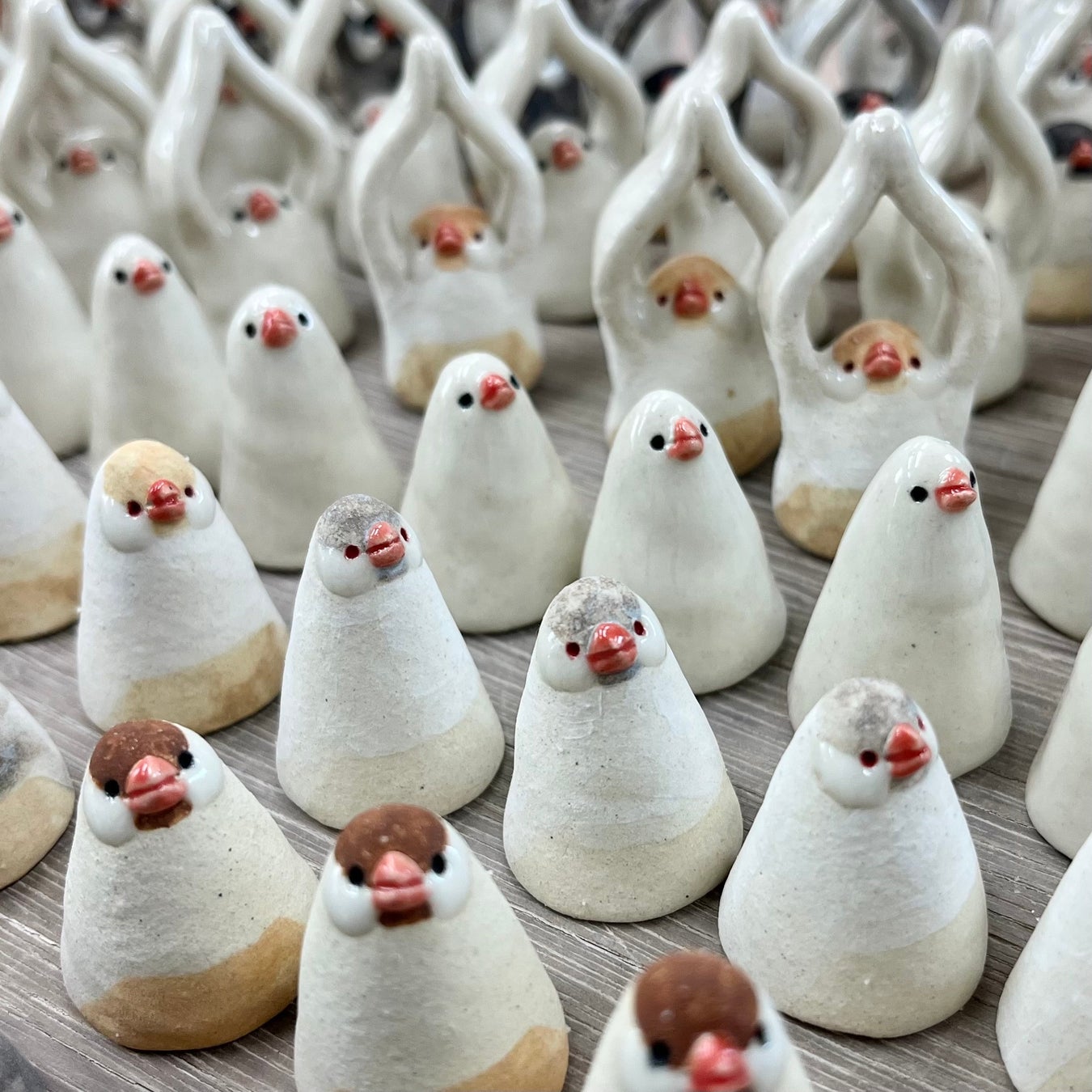 人気のキャラクター「ふろしき文鳥」作者の辻佐織氏の作品や個性あふれる人気文鳥作家作品も販売。