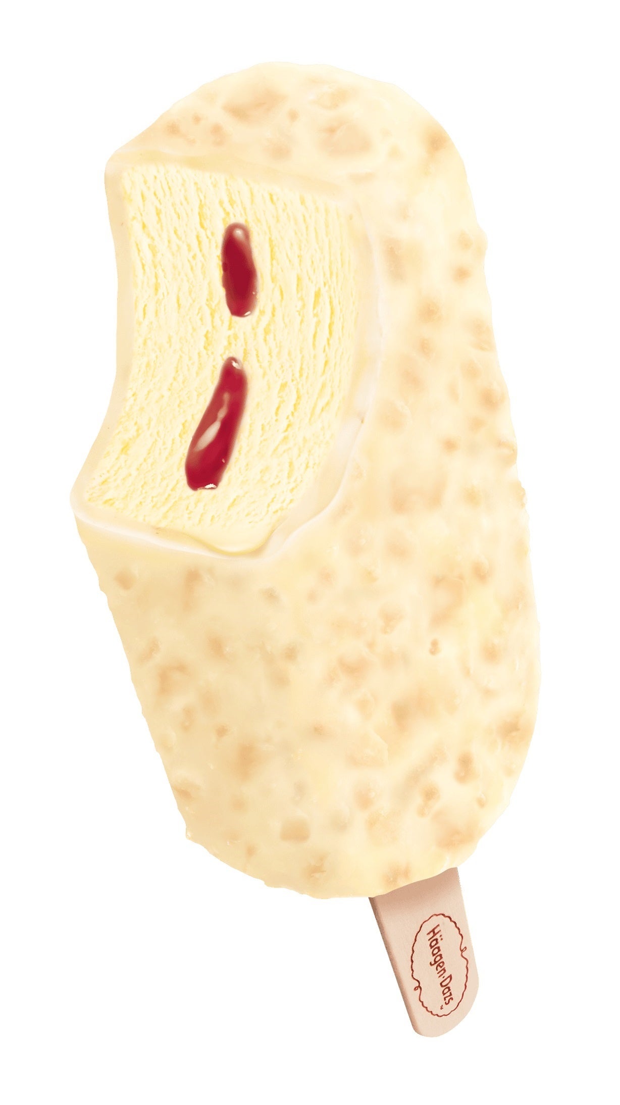 ハーゲンダッツのバーで人気の組み合わせであるミルクとフルーツの組み合わせに着目。白いリッチミルクアイスクリームにベリーの赤が映える、夏らしい見た目と味わいにこだわったバーをお届けします。