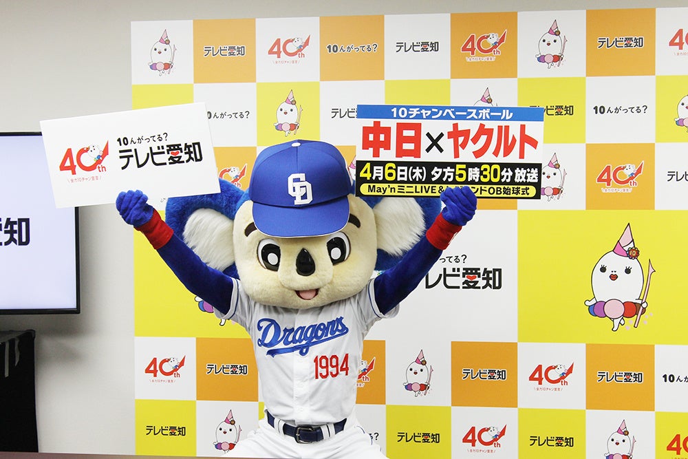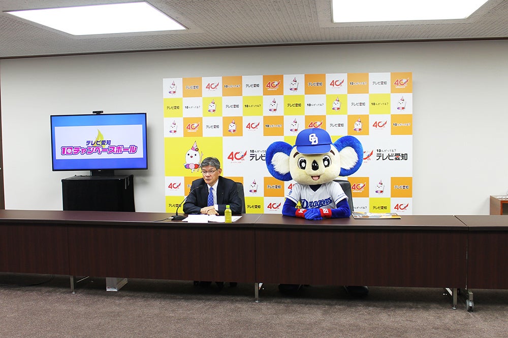 3月28日(水)に開催した開局40周年社長記者会見にドラゴンズのマスコットキャラクター「ドアラ」がゲスト出演!4月6日(木)バンテリンドームでの開幕戦3日目始球式に登場するドラゴンズレジェンドOB二人を発表!アニバーサリーイヤーのスタートとして「10チャンベースボール」の放送を様々な企画で盛り上げます!