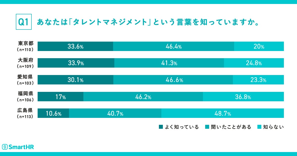 「タレントマネジメント」の認知度は東京・大阪・愛知で7~8割、広島が約5割