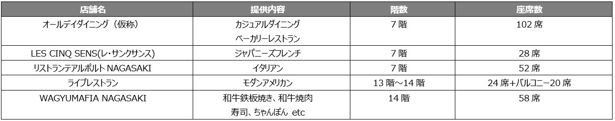 地元長崎の食材を使用したオリジナリティあふれるメニューを提供するレストランや夜景を楽しみながらくつろげるバーなどを多数ご用意しています。
