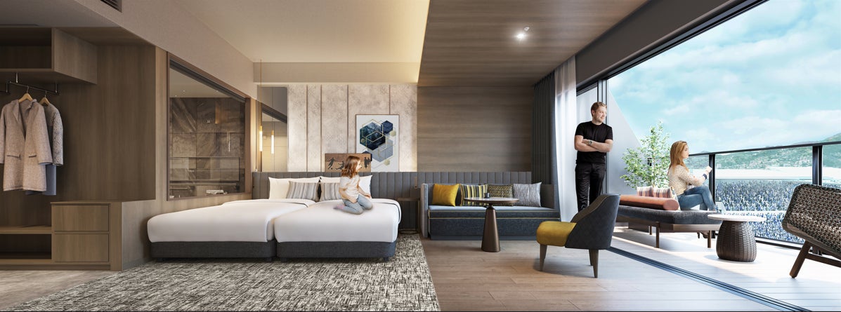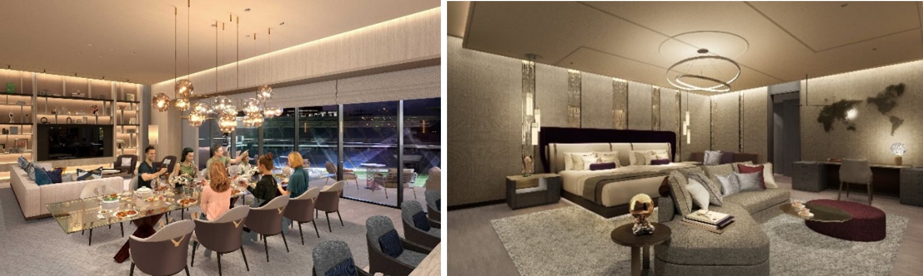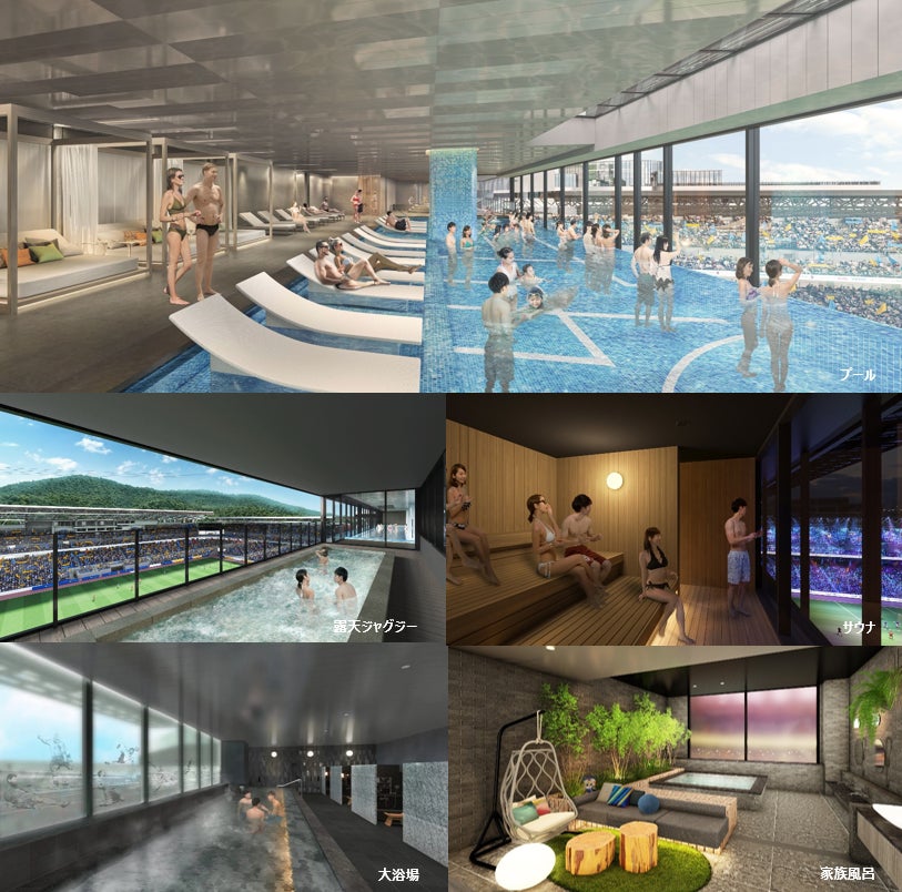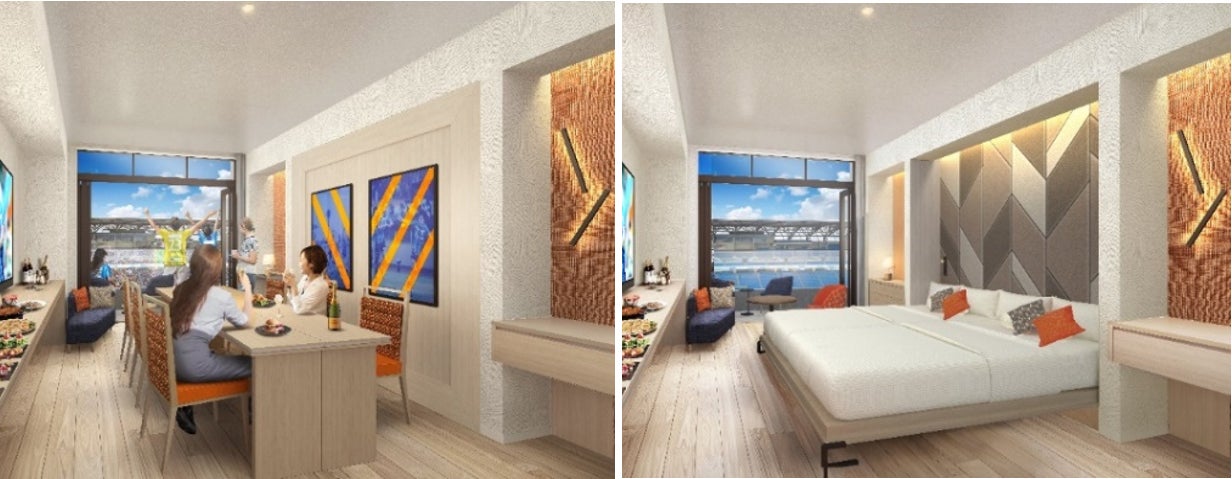 日本初の「スタジアムビュー」を体感できる客室で、サッカー観戦や試合がない日はピッチで実施するレーザーショーなどを楽しむことができます。