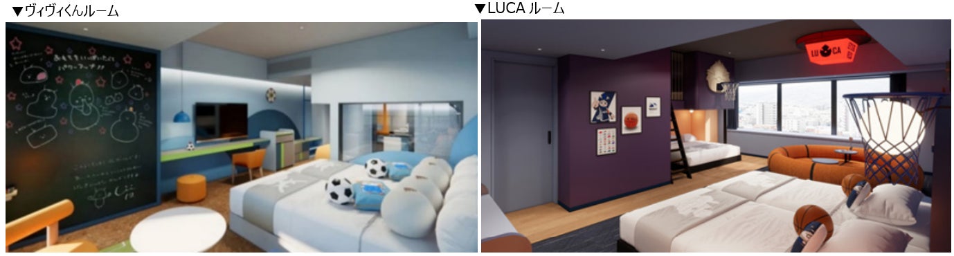 プロサッカークラブ「V・ファーレン長崎」のクラブマスコット「ヴィヴィくん」やプロバスケットボールクラブ「長崎ヴェルカ」のクラブマスコット「LUCA(ルカ)」をモチーフにしたキャラクタールームをさまざまななお部屋タイプでご用意しており、お子様連れでも楽しく滞在いただけます。