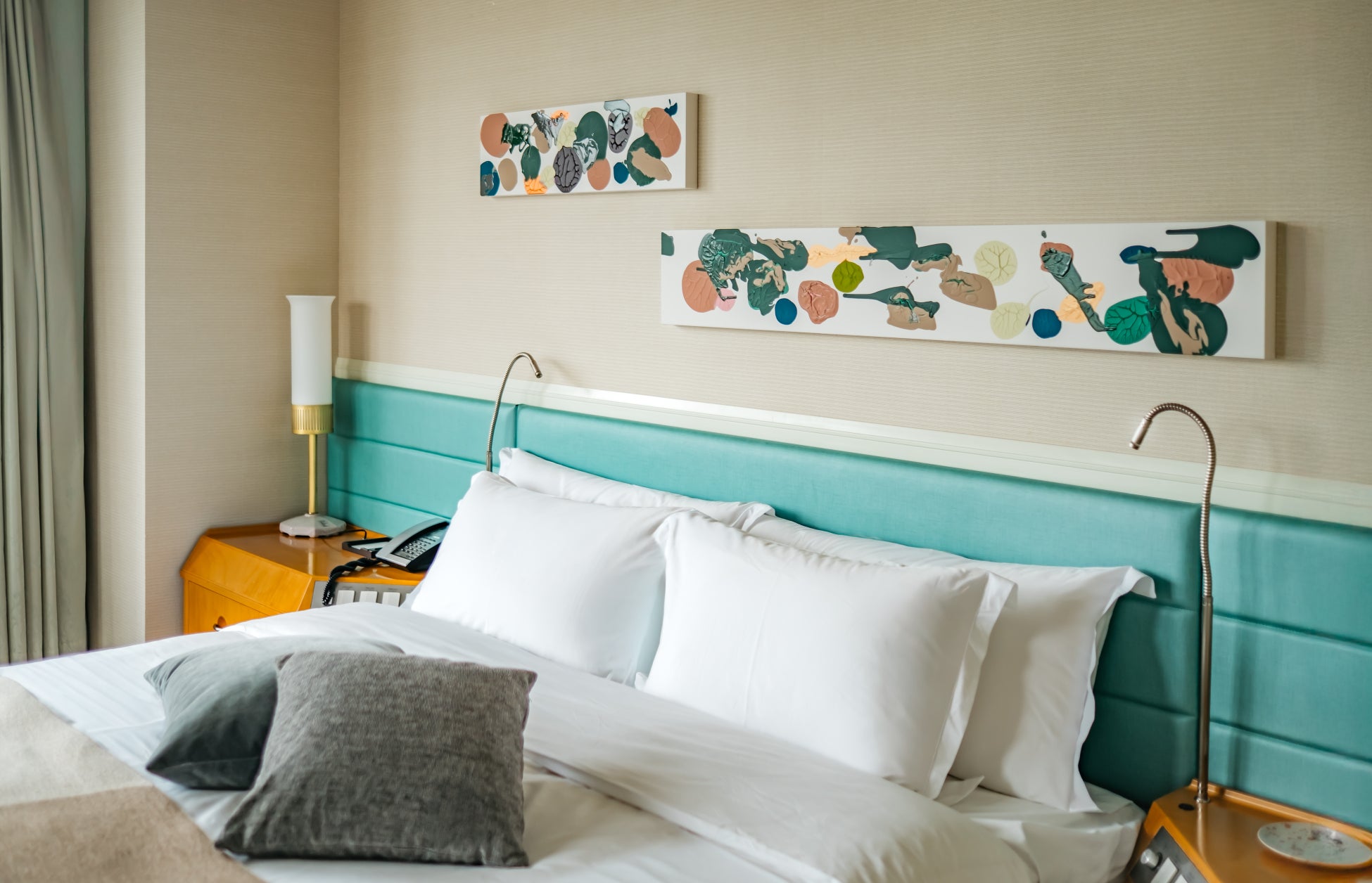 客室のインテリアは、スタイリスト作原文子氏が手掛け、セレクトした上質な家具やこだわりの小物で設えた東京の特等席から、絶景を見ながらお寛ぎいただけます。このプランのためだけに描かれたアーティスト ミズタユウジ氏のオリジナルアートや、温かい手触りのベッドスローやクッションなど客室に備えたこだわりのアイテムをお楽しみいただけます。