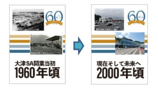 60周年を記念する限定メニューの販売、大津SAの歴史を振り返る写真展等を実施します。お出かけの際は是非大津SAにお立ち寄りください。