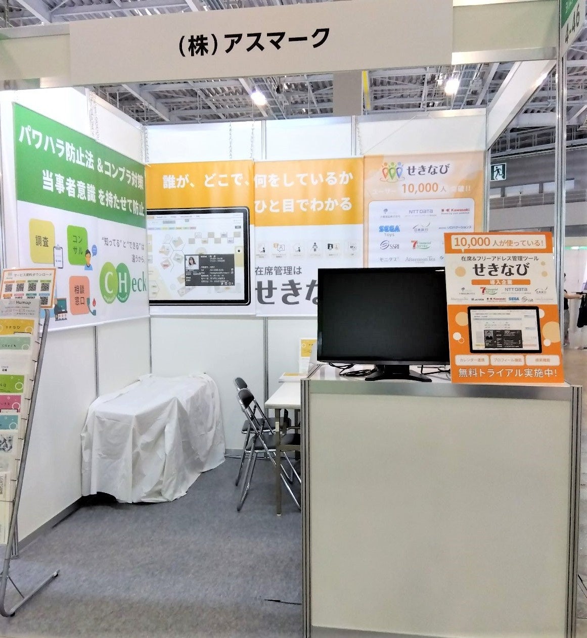 Humapのブース(小間番号:4-46)では、在席管理ツール「せきなび」や ハラスメント&コンプラ調査「CHeck」のアンケート画面などを実際にご覧いただけるデモ機をご用意。