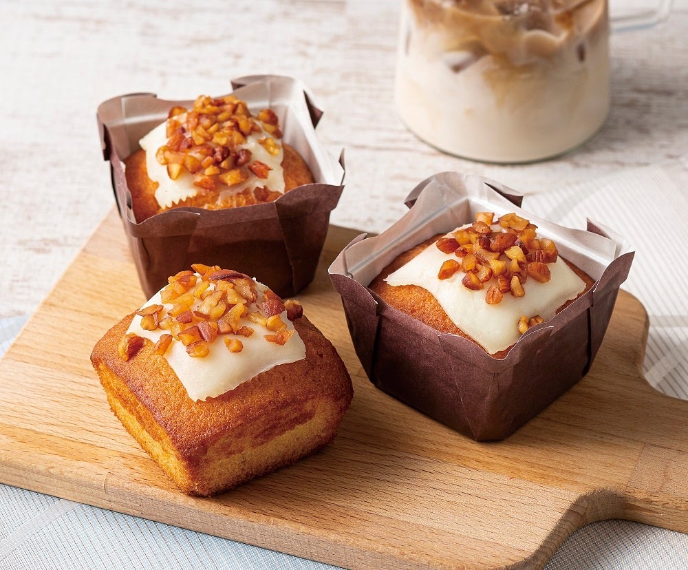 しっとりとした塩キャラメル風味の生地に、トッピングしたクラッシュアーモンドの食感がアクセントになっています。