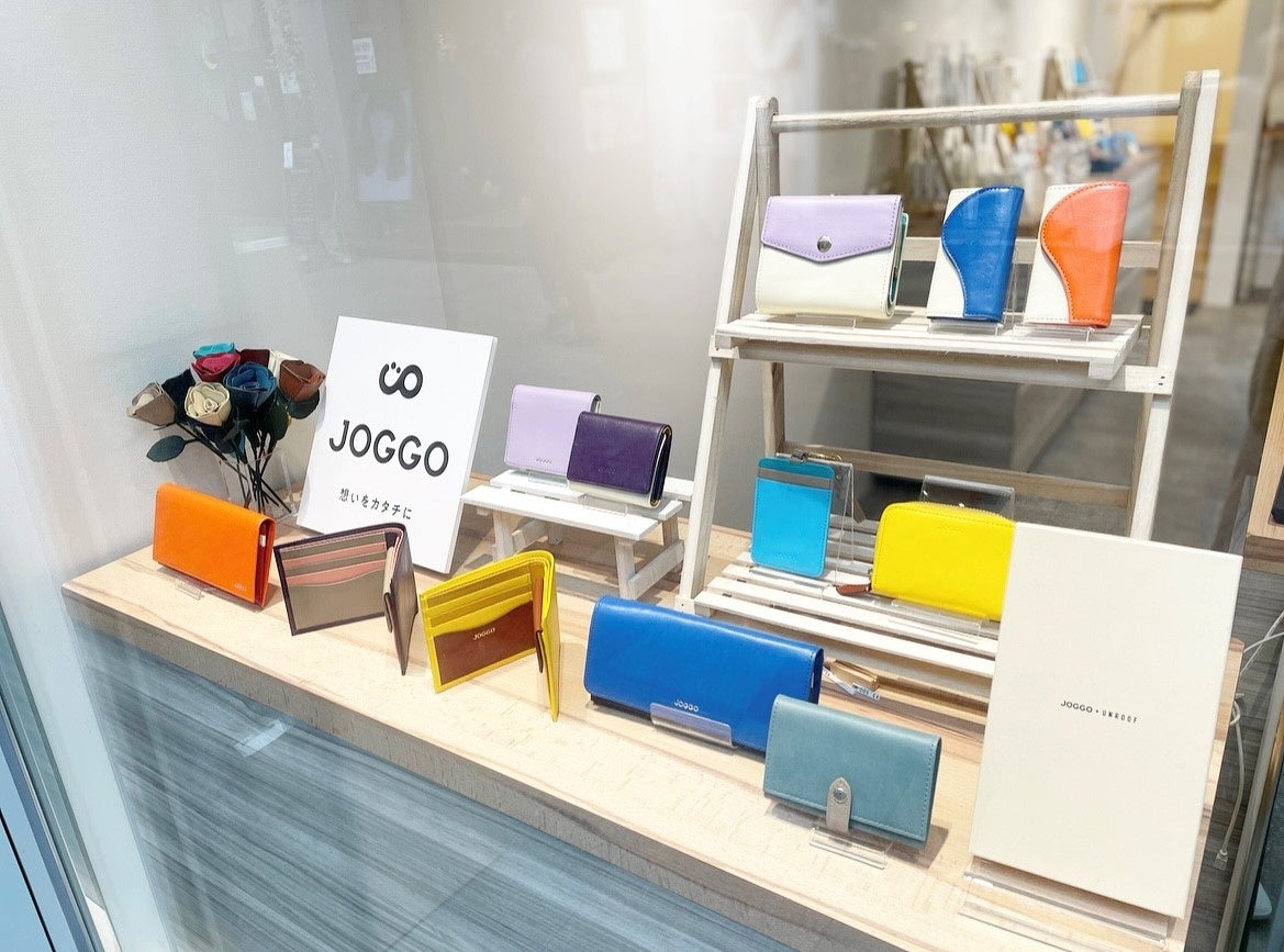 「JOGGO」が今年発売した限定カラー6色のレザーを使用した商品をポップアップストアにて販売します。普段はオンラインでしか買えない「JOGGO」の商品を手に取っていただける機会となっています。