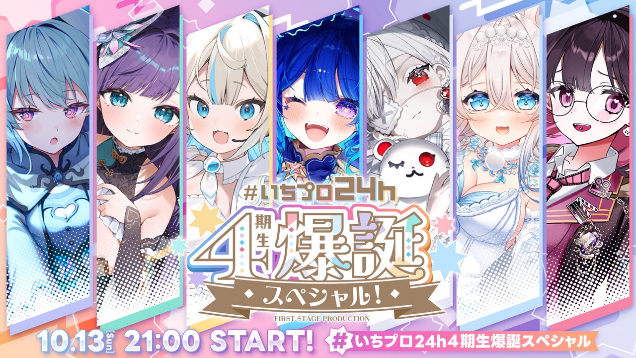 「FIRST STAGE PRODUCTION」(通称:いちプロ)は、魅力的な個性と才能を持つタレントが集まるVTuber事務所です。2024年4月に行われたタレントオーディションで多数の応募者から選ばれた所属タレント7名が、10月4日(金)からXアカウントおよびYouTubeチャンネルを公開し、活動を開始致しました。7名のデビュー配信は、10月12日(土)20時からと13日(日)19時30分からの2夜連続初配信リレーを予定しており、更にその後事務所恒例の24時間配信企画にて視聴者に最高のエンターテインメントをお届け致します。各タレントがそれぞれの個性を発揮しながら初配信を行いますので、ぜひご期待ください。