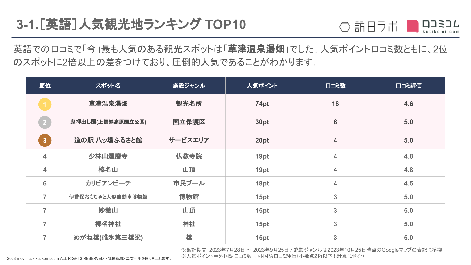 ・外国語口コミ数&口コミ率 TOP10 のスポット